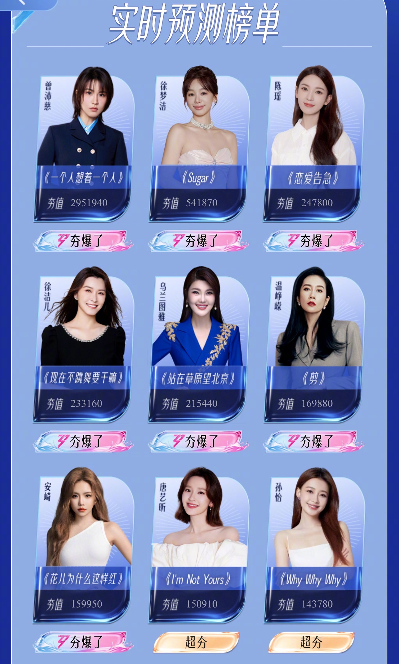乘风2026最新人气投票排名夯爆了第一名:曾沛慈第二名:徐梦洁第三名:陈瑶第四名:徐洁儿第五名:乌兰图雅第六名:温峥嵘第七名:安崎