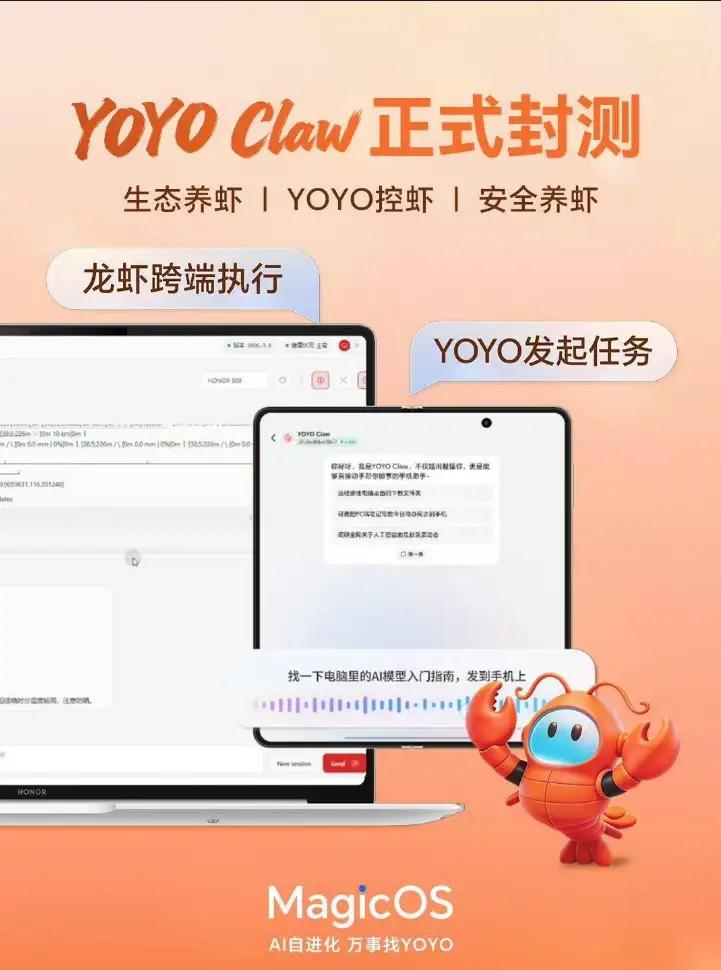 重磅炸场!荣耀龙虾宇宙正式上线,YOYO Claw开启封测🔥 直接把AI玩出新高度,荣耀这波操作也太顶了! 别把它当成普通语音助手,YOYO Claw可是基于OpenClaw框架的系统级AI大神,直接颠覆你对智能助手的认知! 不光能玩转各种复杂高阶操作,更是把隐私安全焊死在底层,主打一个安全养虾,放心用没顾虑! 想象一下全自动的懒人生活有多爽: 清晨醒来,它自动播报实时天气、一键叫车、播放专属歌单,跨APP无缝联动不用手动切换; 夜晚睡前,自动关闭家居灯、设置次日闹钟、备份手机照片,繁琐流程一键搞定。 彻底解放双手,躺平就能享受科技带来的极致便利,这才是AI时代该有的样子!