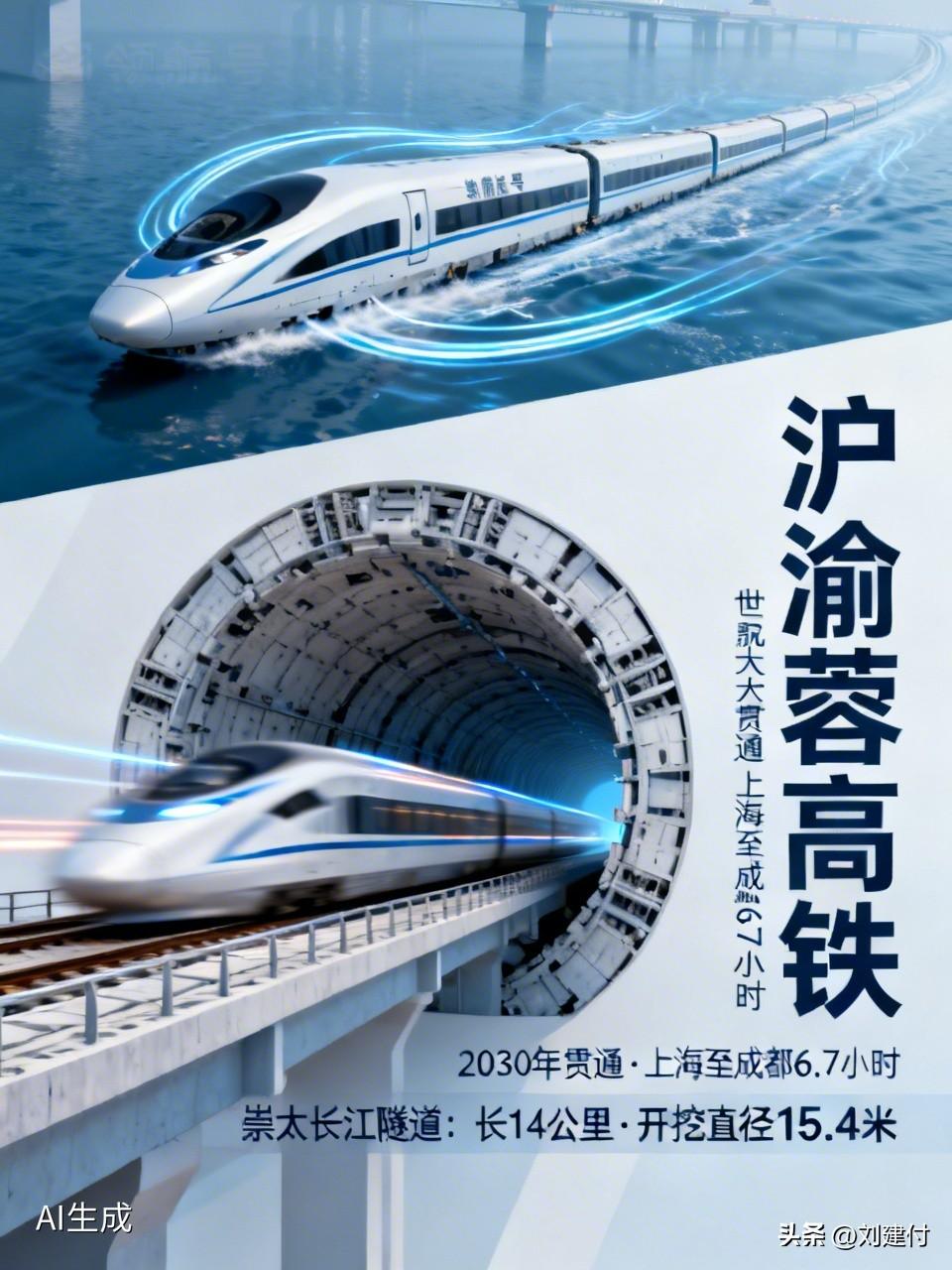 中国最强东西大动脉要来了 中国最强东西大动脉——沿江高铁(沪渝蓉高铁)即将到来,着实令人期待!近期,世界最大直径高铁盾构机“领航号”完成长江水下段施工,预计2030年全线贯通,届时上海到成都仅需6.7小时。 崇太长江隧道作为咽喉工程,全长14公里,开挖直径15.4米,是世界行车速度最高的水下高铁隧道。高铁将在长江水下89米处以350公里时速穿越,全程不减速,彰显我国基建硬核实力。 这条约2100公里的大动脉串联多个核心城市,压缩城市间通行时间。它横贯三大城市群,覆盖超40%的经济总量和人口,必将成为长江经济带高质量发展的核心脊梁。