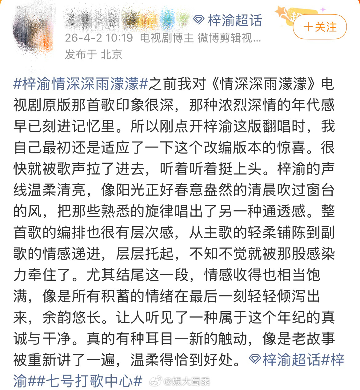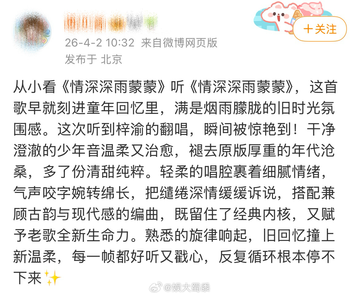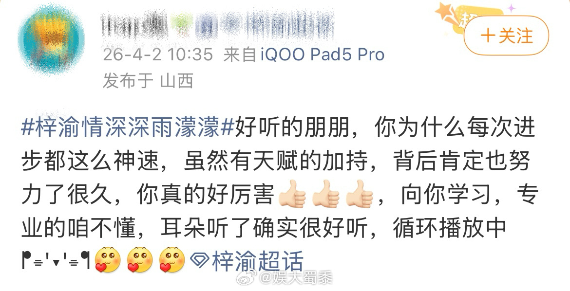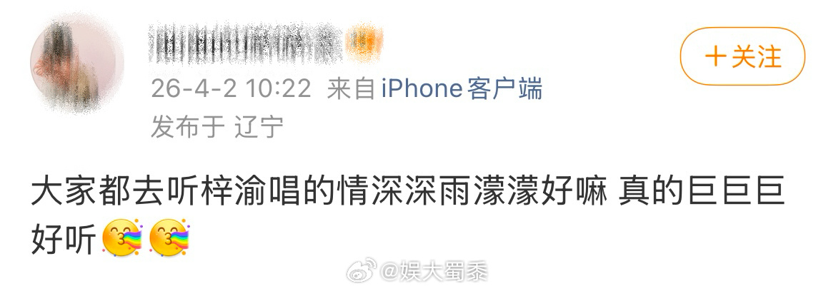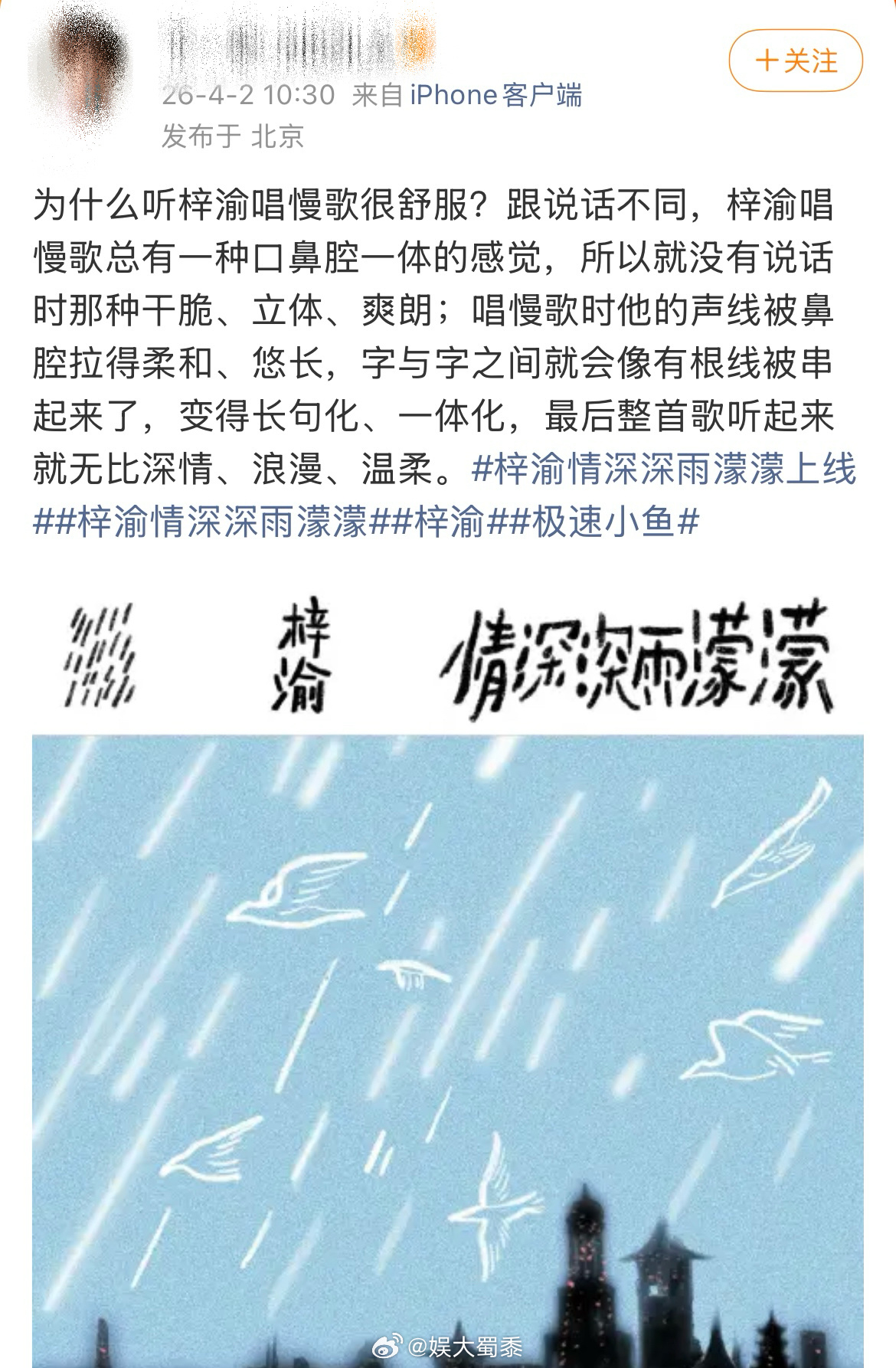来看看大家听完之后真情实感的反馈,啥也不说了,这个梓渝真的好棒!梓渝情深深雨濛濛