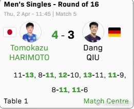 2026澳门乒乓球世界杯张本智和 260402 淘汰赛R16张本智和 4-3 邱党 (-11,-8,10,11,9,-8,6)