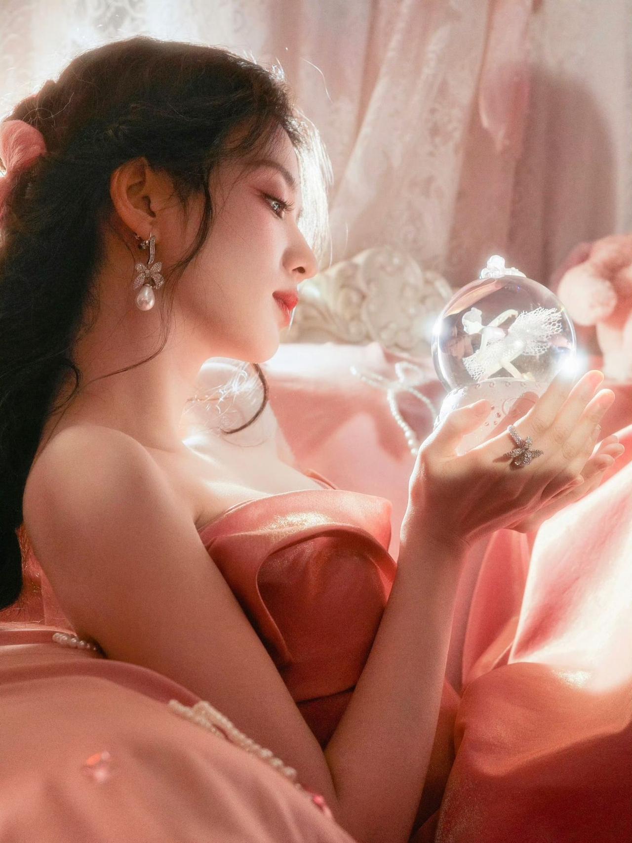 王楚然 在粉色丝绒的褶皱里 时间被揉成柔软的糖 珍珠串起的风 拂过发梢,也拂过蛋糕上 碎钻般的光 她托着水晶球里的芭蕾 也托着一整个少女的梦境 缎面裙裾流淌成河 载着蝴蝶结、绒兔与未拆封的愿望 阳光漫过蕾丝帘 把她的轮廓镀成暖金 每一缕发丝都在呼吸 每一寸肌肤都浸着甜 粉色是她的底色 星子是她的配饰 她是从童话里走出来的公主 捧着生日的烛火 也捧着永不褪色的 少女心事与浪漫
