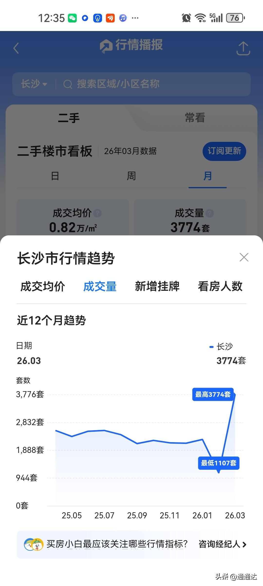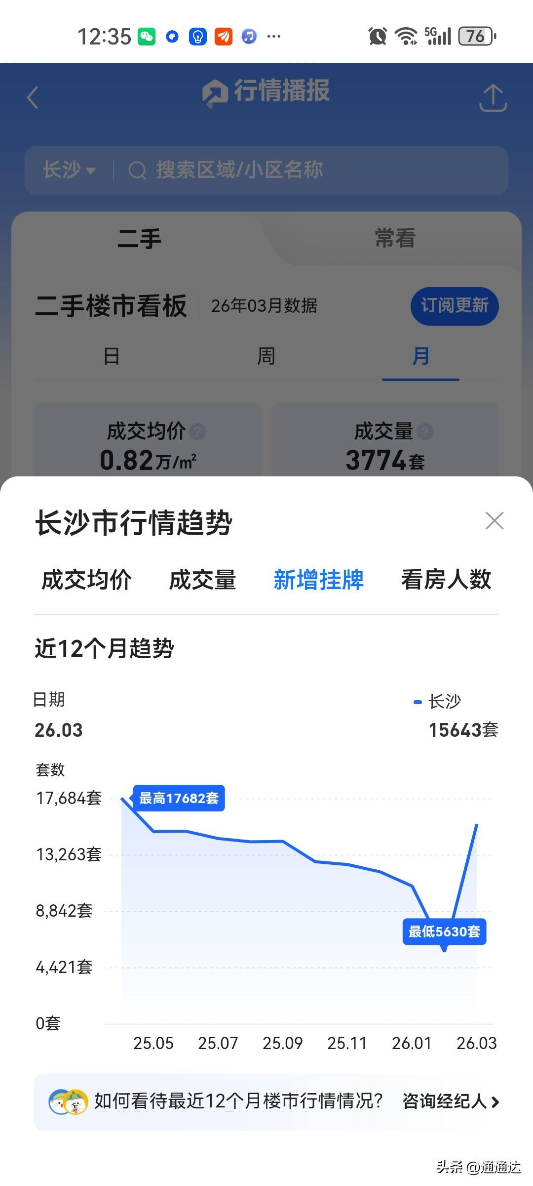 最近看到全网楼市火爆的消息满天飞,但你打开贝壳还能看到城市成交数据的都在跌,看长沙的成交价格创出历史新低,成交量也就是和往年三月一样没有很大变化,挂牌量涌现一万五千套比去年最高挂牌量少的不多了,随着成交量上升,挂出卖不完的房子,事实上比较偏远的基本没有流通性,除非在附近上班有可能买,大多数成交都是市中心老破小,地铁口的房子