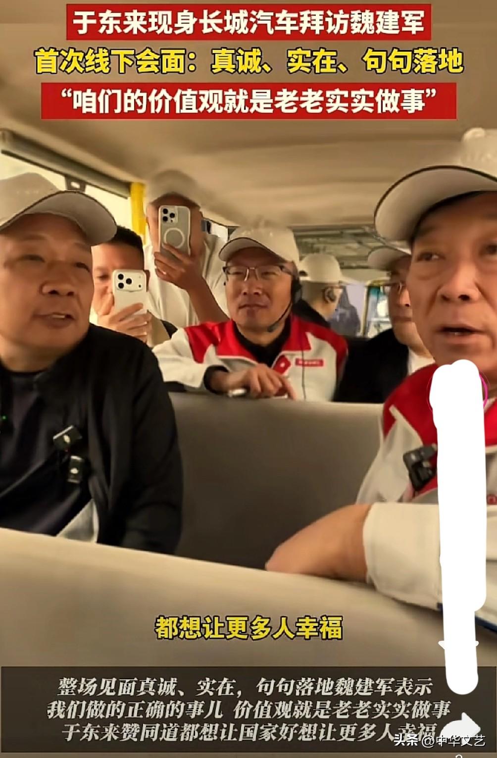 4月2日,于东来现身长城汽车第一次拜访魏建军(全程没有客套话): 1,二人价值观一致,就是老老实实做事,希望国家更好; 2,于东来夸赞说:“在这里不仅看到了长城制造业状态,更是看到了中国工业的状态,非常骄傲,值得点赞; 3,二人立下口头约定,邀请魏总到许昌胖东来去考察。 小编:两个受人尊敬的企业家,说着最简朴的话,却干着利国利民的大事,值得称赞!