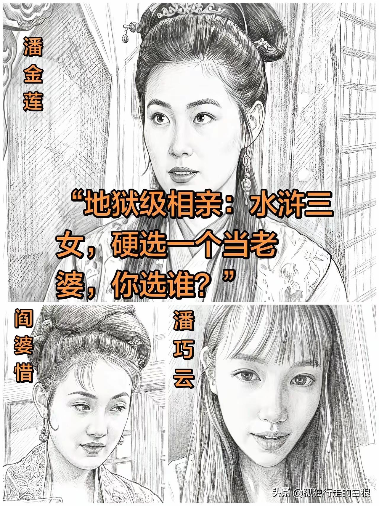 水浒三女非要的话,你选谁当老婆? 首先,阎婆惜是不能选的,这货是真毒。知道你弱点,那是往死里整你,还要吃你一辈子。 潘金莲呢?没那么坏,是别人一步步引诱的,就和武松说的那样,紧守藩篱,还是有机会看住的。 潘巧云这个属于是二手货,用用可以,但杨雄的问题也不小,说不好怪谁,但起码没起谋财害命的心思。 但说实在的可以的话还是找个良家子吧。没必要在破烂里挑挑拣拣。