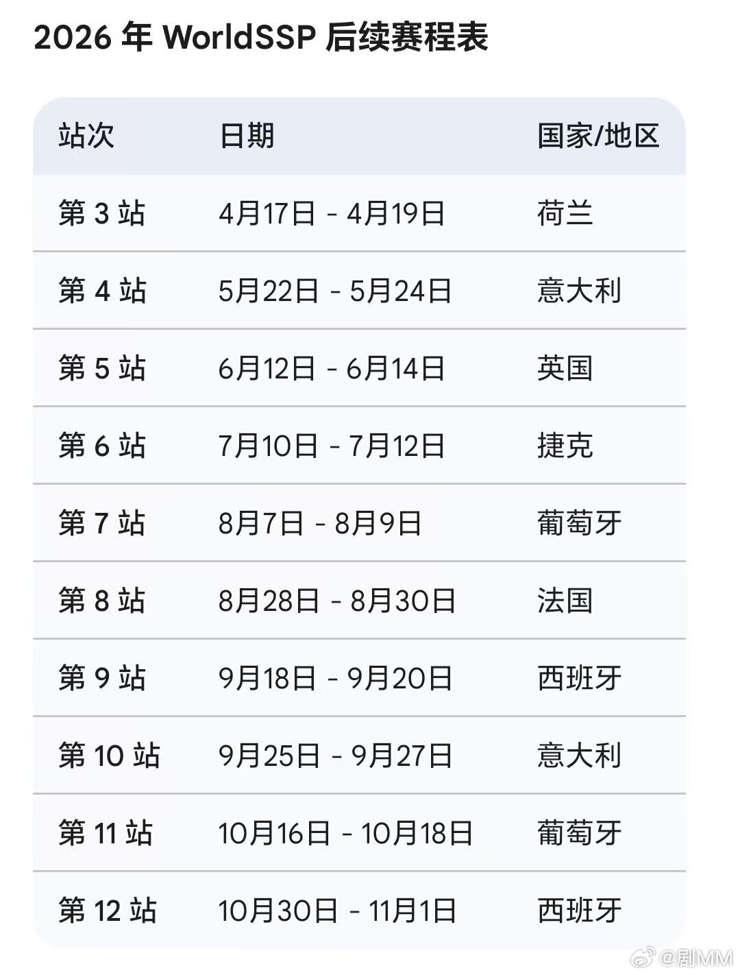 张雪机车赛事日程全览 谁还没被张雪圈粉我真的会伤心的,从湘西少年到世界冠军,他把别人眼里的不可能变成了自己的日常,2026年WorldSSP还有这么多站的比赛,为他喊出最响亮的加油 张雪把中国机车骑上世界的舞台