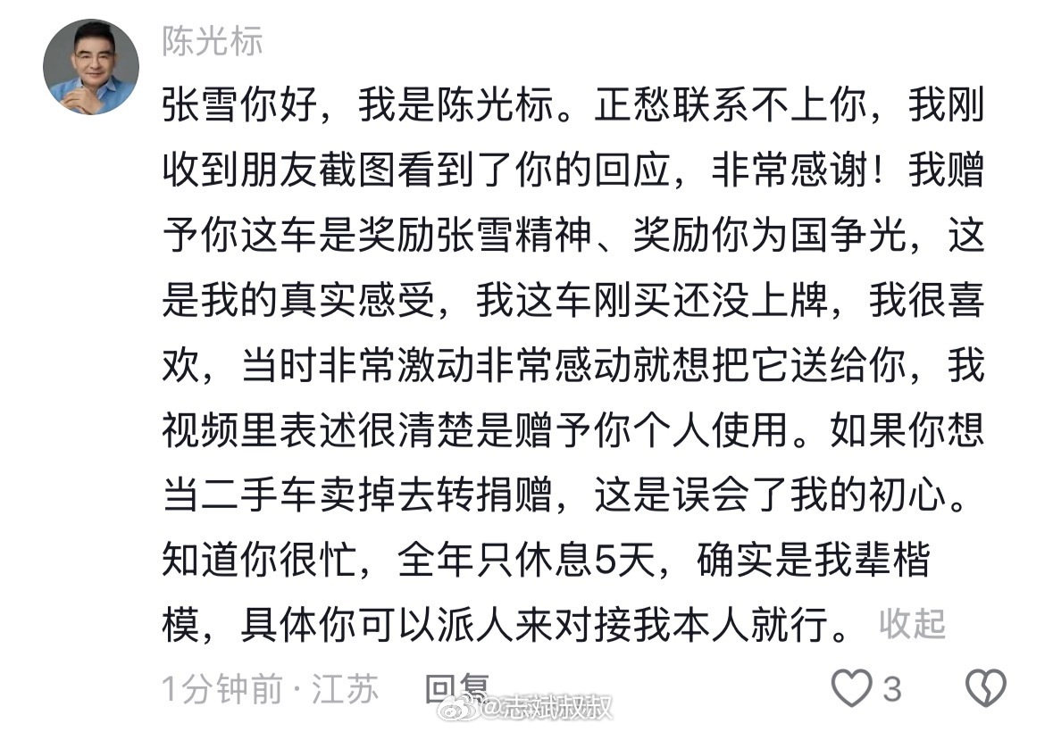 陈光标回应张雪要卖车回应来了,标哥口嗨