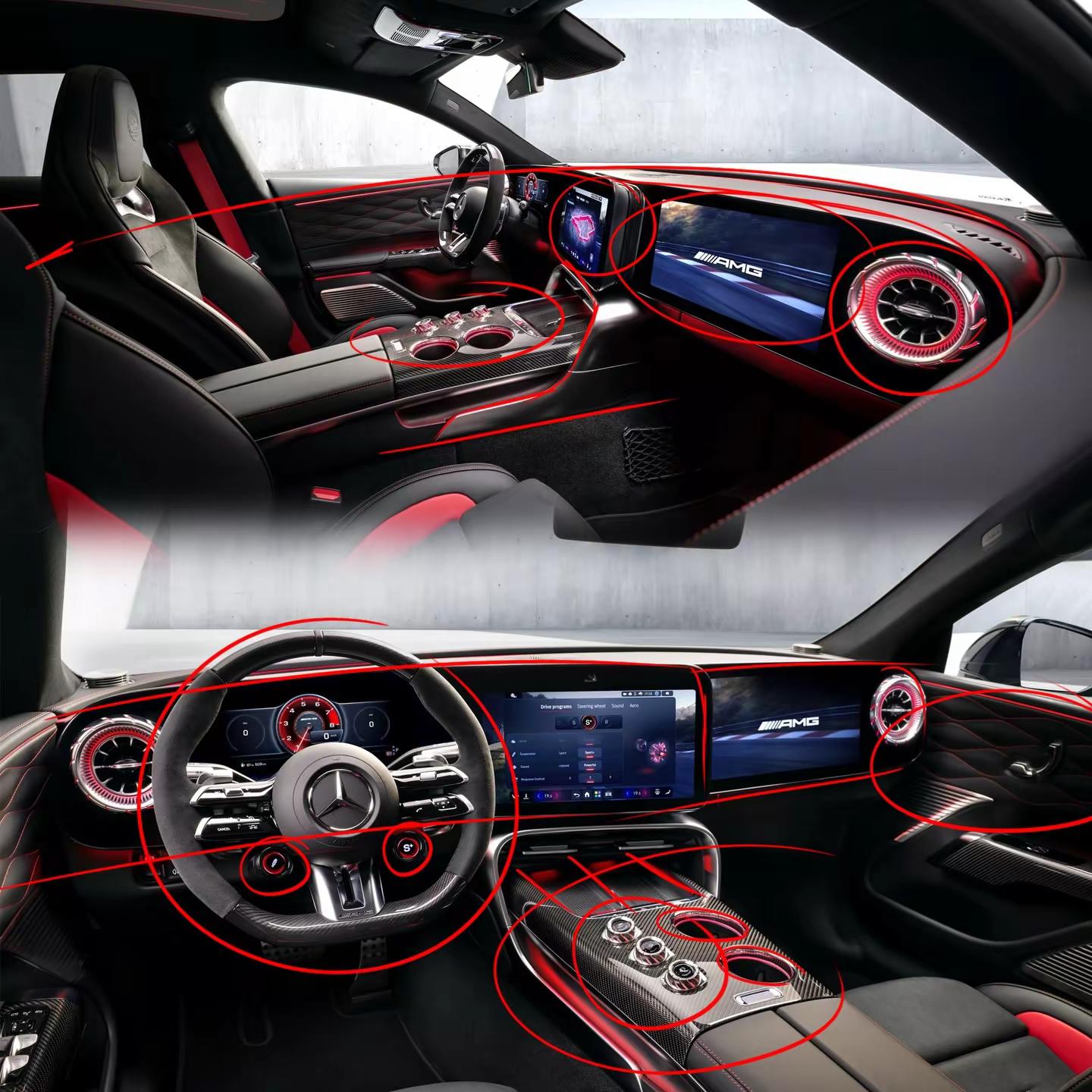梅赛德斯-AMG纯电SUV内饰渲染图曝光 梅赛德斯-AMG正打造一款全新纯电SUV,新车由AMG从零开发,采用专属平台打造,内饰设计极具未来感,双联大屏、涡轮出风口与运动化座舱尽显性能豪华感。 其市场表现或将参考保时捷卡宴EV的市场反馈,预计数月后将有更清晰的市场预期。