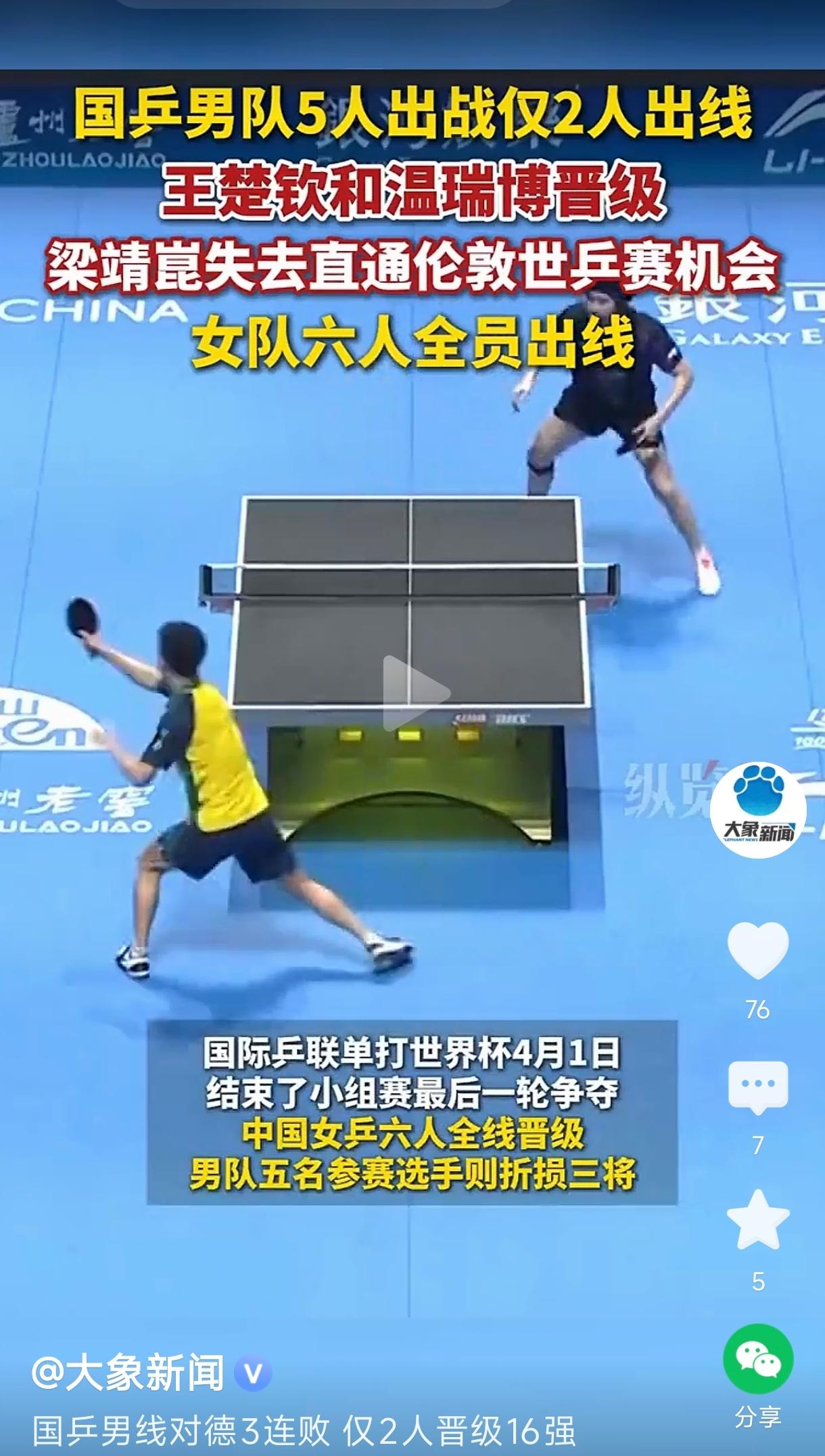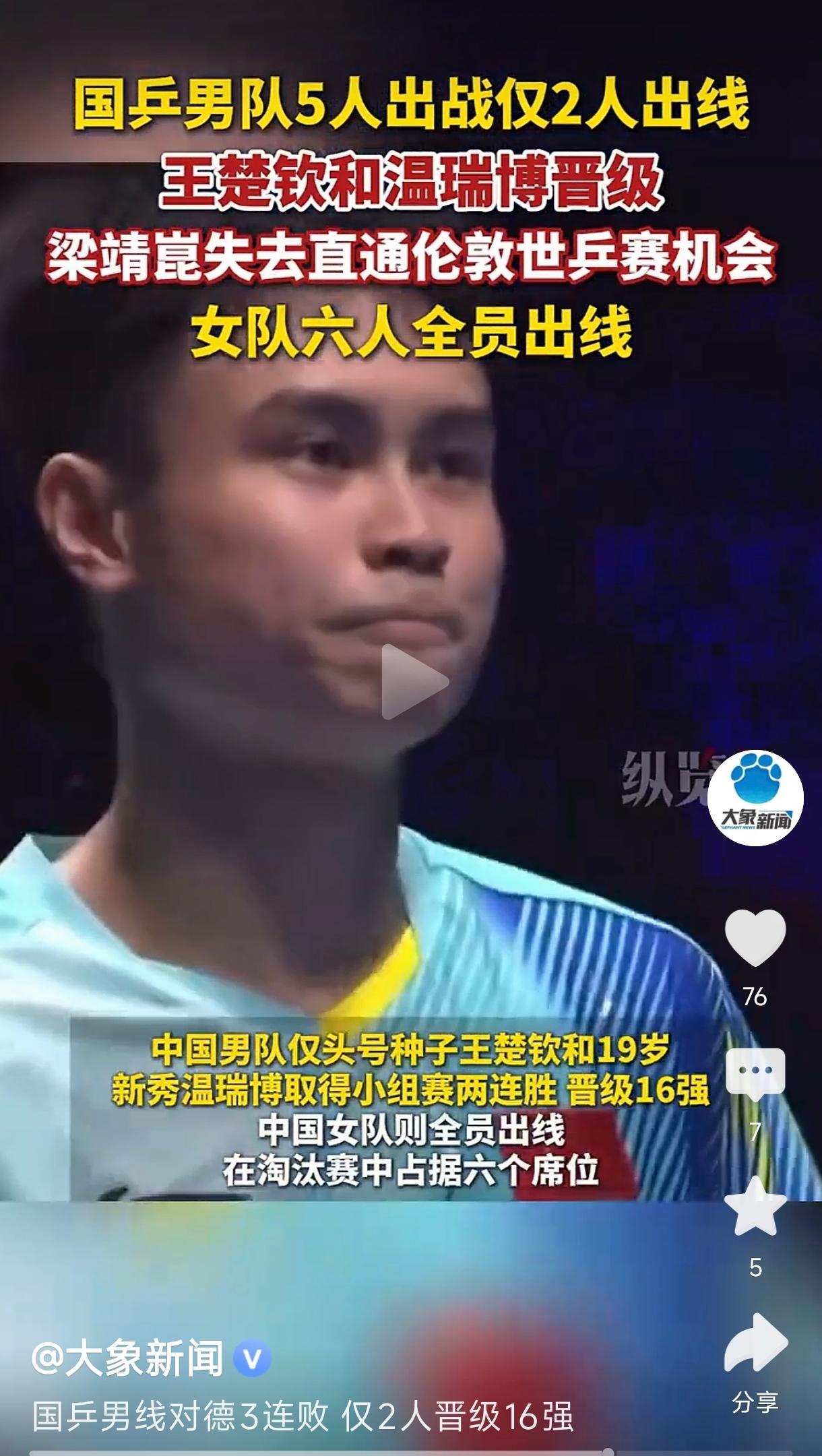 国乒男线对德3连败 国乒男线对德国队出现三连败,整体表现受到一定影响,目前仅有两名选手成功晋级16强。这种情况说明德国男乒实力提升明显,给国乒带来了不小的挑战。接下来,国乒需要总结经验,调整状态,争取在后续比赛中扭转局面,提升整体竞争力。国乒外战失利 国乒男乒困局
