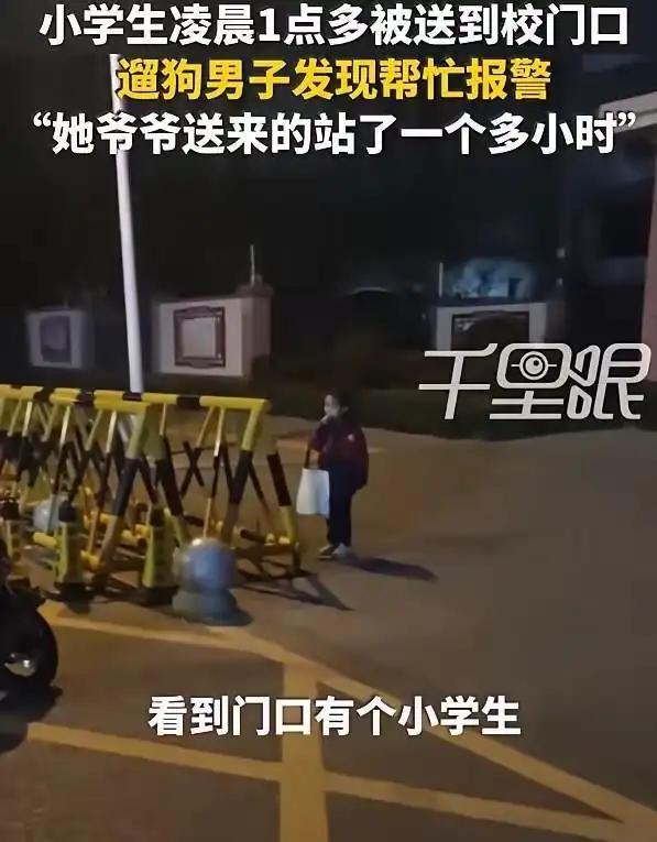 太离谱了!河南洛阳,小学生凌晨1点40被爷爷送到校门口,转身老人就走了!小女孩一个人在漆黑的夜里站了2个多小时,遇上了一个遛狗的好心男子。男子:“真是让人捏了一把汗,万一遇到坏人怎么办?父母要注意一下了!” 这事是真的,就发生在2026年3月30号凌晨,河南洛阳洛龙区某小学门口,不是编的段子,也不是电影里的情节。 那天凌晨1点40分,街上基本没人,路灯昏昏沉沉的,夜里风还挺凉,吹在身上直打哆嗦。一个背着书包的小女孩,就孤零零站在学校紧闭的铁门前,手里攥着个文具袋,一动也不敢动。 送她来的是她爷爷,八十多岁了,把孩子送到校门口,简单说了两句,转身就走了。老人压根没看校门关没关,也没给孩子留个联系方式,就这么放心地让孩子一个人站在那。 监控拍得清清楚楚,从爷爷走后,小女孩就一直站在原地,小小的身子在黑夜里看着特别可怜。她不敢走,爷爷告诉她要在这等老师,她就乖乖听话,哪怕冻得小手发红、脚发麻,也没挪一步。 她不知道现在是凌晨,也不知道还要等多久,更不知道怎么联系家人,就睁着大眼睛看着空荡荡的街道,眼泪在眼眶里打转,却不敢哭出来。就这么站着,从1点40分到3点多,整整快两个小时。 多亏了市民常先生,他那天像往常一样凌晨出门遛狗,狗突然对着校门口狂叫,他才注意到这个小姑娘。常先生心里一紧,这大半夜的,怎么会有小孩独自站在这。 他赶紧走过去,蹲下来温柔地问小姑娘怎么回事。小姑娘一看到他,紧绷的神经就松了,带着哭腔说,爷爷送她来上学,说学校马上开门,然后就走了,她等了好久,校门都没开,特别害怕。 常先生听了又心疼又无奈,当即就给小姑娘爷爷打电话,可老人耳朵不好,反应也慢,根本说不清楚情况,也不知道自己闯了多大的祸。 常先生事后说,真是让人捏了一把汗,万一遇到坏人怎么办?父母要注意一下了。他不敢想,要是自己没出门遛狗,要是狗没发现小姑娘,后果真的不敢想。大半夜的,一个小姑娘独自在路边,太危险了。 常先生不敢耽误,立马打了报警电话。民警很快就到了,看到冻得瑟瑟发抖的小姑娘,赶紧蹲下来安抚她,帮她搓手,还拿出热水让她暖身子。 问了之后才知道,小姑娘爷爷年纪大了,记混了时间,把凌晨1点40分当成了早上上学的时间,没确认校门开没开,就自己走了。老人也是好心,想让孩子早点到校不耽误学习,没想到因为疏忽,差点出大事。 民警通过小姑娘提供的信息,很快联系上了她的父母。夫妻俩得知孩子独自在寒风里站了快两个小时,吓得魂都快没了,赶到现场就抱着孩子哭,一个劲地向常先生和民警道谢,也怪自己太疏忽。 原来这对夫妻平时工作太忙,照顾孩子的事都交给了爷爷,他们根本没料到会出这种意外。这事传到网上后,网友们都议论开了,有人心疼小姑娘,有人说老人年纪大了没办法,也有人批评父母没尽到监护责任。 其实这事也提醒大家,隔代照顾孩子确实不容易,老人年纪大了容易出错。父母再忙,也不能把孩子完全交给老人,接送孩子的时间一定要跟老人交代清楚,留下紧急联系方式。 另外,家长也得重视孩子的安全教育,教孩子遇到危险该怎么求助、怎么自救。孩子的安全真的不能马虎,任何一点疏忽,都可能酿成无法挽回的伤害。希望所有家长都能引以为戒,好好保护自己的孩子。