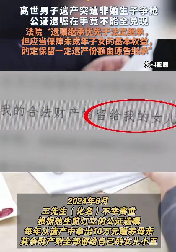 法定继承是同等权利,遗嘱继承是当事人权益,除非私生子太小,需要留有抚养份额。 男子立公证遗嘱财产全给女儿,遭私生子起诉,法院:非婚生子女和婚生子女享有同等的继承权,“酌定保留一定遗产份额由原告继承”