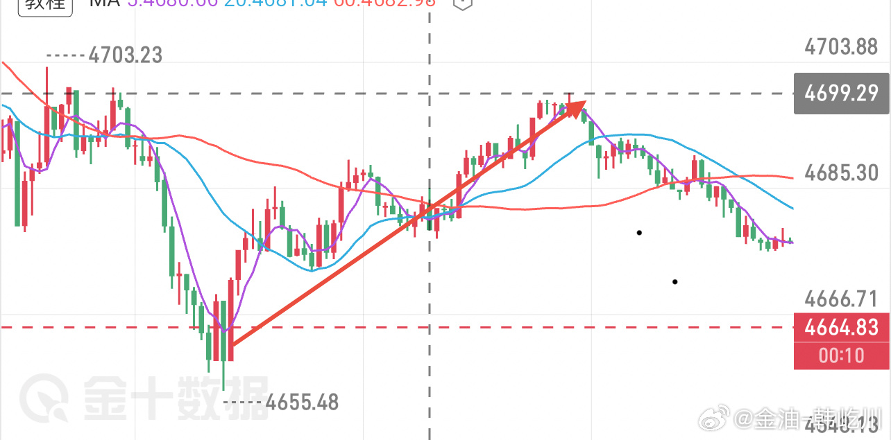 早间黄金思路,依托4650低点支撑上方,保持低多看涨,那么在二次回撤后最低下至4655附近!