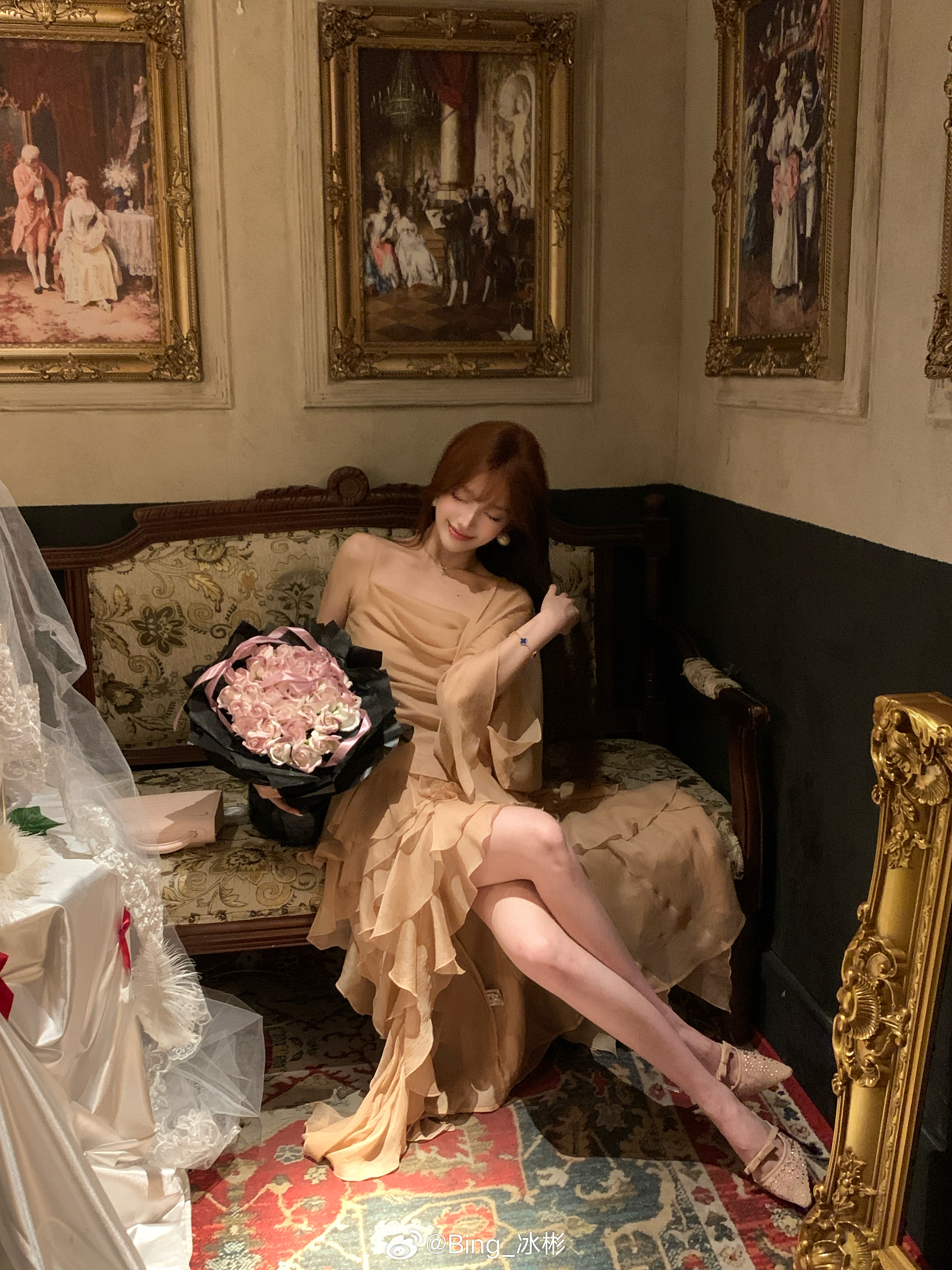 今晚直播间蹲蹲,开⬇️⬇️长短款可以选择~超大裙摆蕾丝覆纱,朦胧美