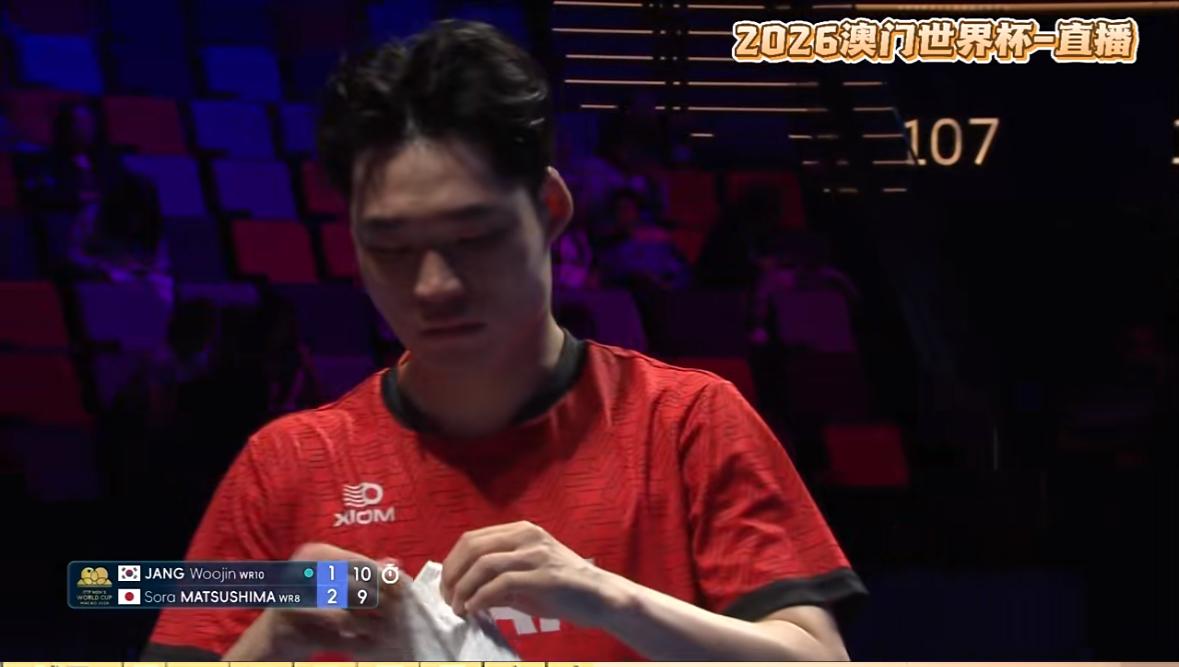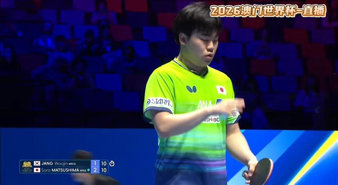 松岛辉空4:1张禹珍晋级澳门世界杯男单8强——张禹珍关键分被松岛挑战发球! 4月2日澳门世界杯男单1/8决赛, 松岛辉空4:1张禹珍, 11:13,11:6,11:7,12:10,11:8 张禹珍第一局咬回来后, 一松劲就连丢两局, 第四局松岛辉空也学习奥恰洛夫, 在关键时刻11:10挑战张禹珍的发球,结果张禹珍回抛,35.46度, 松岛再赢一局! 第五局,张禹珍努力拼搏,却无力回天! 松岛辉空晋级, 下一局松岛打弗朗西斯卡与莫雷加德的胜出者!