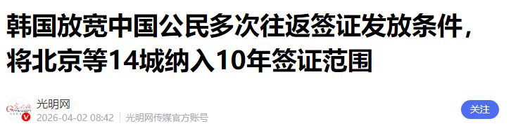 韩国这次算是下了血本了! 韩国宣布,从3月30日起,对北京、上海、广州、深圳等14个城市的中国居民签发十年多次往返签证。 这14个地方,基本都是国内的一线和强二线城市,这些地方的居民,只要符合条件,就能申请十年有效期的多次往返签证,单次停留最长能到90天,十年之内想什么时候去韩国,只要签证在有效期内,随时都能走。 而且这次的申请条件也放宽了不少,以前申请韩国多次签证,还得准备工作证明、收入证明这些繁琐的材料,现在不用那么麻烦了,只要是这14个城市的户籍,带上户口簿、身份证,不用交签证费,就能直接申请,流程简化了很多,跟以前比起来,简直是省了一大笔事。 除此之外,有过访韩经历的中国公民,还能申请五年多次往返签证,就连在韩投资额超过100万美元的中国企业相关在岗人员,还有公务、商务访韩的人员,也能申请十年签证,适用范围比以前扩大了不少。 之前韩国对中国公民的签证政策一直比较严格,除了济州岛能免签30天,其他地方都得办签证,而且大多是短期签证,有效期最多五年,申请门槛也高。更关键的是,之前韩国还因为疫情等原因,暂停过对中国公民的短期签证发放,后来虽然恢复了,但也没有这么大力度的放宽。 韩国之所以这么做,说白了就是急着拉动国内经济,尤其是旅游业。大家都知道,中国一直是韩国最大的入境客源地,根据韩国旅游记者协会的报告,2025年访韩的中国游客大概有548万人次,占了韩国入境游客总量的近29%,稳居第一。 而且中国游客的消费能力也很强,有数据显示,中国游客在韩国的人均信用卡消费差不多有4700元人民币,是日本游客的1.5倍。韩国银行测算过,每增加100万名中国团体游客,就能带动韩国经济增长率提升0.08个百分点,这对经济复苏乏力的韩国来说,无疑是雪中送炭。 疫情之后,韩国的旅游业一直没能完全恢复,虽然也在努力推广,但效果一直不理想,而中国游客的回归,就是韩国旅游业复苏的关键。 韩国旅游发展局的负责人也说了,要实现年接待3000万外国游客的目标,关键就在于抢占中国市场先机。所以这次推出十年多次往返签证,就是为了吸引更多中国游客去韩国,不管是旅游、购物,还是医美、探亲,都能更方便,从而带动韩国的零售、免税、餐饮等相关行业复苏。 为了配合这个签证政策,韩国还做了不少配套措施,比如首尔、釜山的地铁支持微信购票,主要商圈也普及了支付宝、微信支付,方便中国游客消费,还会发放消费折扣券。 另外,中韩之间的航线也在加密,比如重庆到仁川每天都有航班,邮轮港口的运营时间也延长到了24小时,还增设了通关通道,就是为了让中国游客出行更便捷,打消大家的出行顾虑。 不过这个政策推出后,也有不少争议。最明显的就是地域不平衡,这14个城市里,没有大连、沈阳、成都、西安这些热门城市,不少网友吐槽,凭什么只有这14个城市能享受这个福利。 还有一些刚办完五年签证的人,直呼“血亏”,觉得自己刚办没多久,就推出了十年签,希望能自动升级或者退差价。 另外,也有人觉得,韩国的这个政策看似优惠,但和中国对韩国的签证政策不对等,中国对韩国是单方面免签30天,拿着护照就能来,而韩国除了这14个城市的十年签,其他地方还是需要办签证,而且是有条件的开放。 不管怎么说,韩国这次的举动,确实是下了血本的。从政策本身来看,十年多次往返签证,有效期长、申请门槛低、流程简化,确实能给符合条件的中国居民带来很大便利。 从韩国的角度来说,这也是无奈之举,毕竟国内经济需要拉动,旅游业需要复苏,而中国市场是他们最看重的。而且这也不仅仅是为了拉动经济,也是为了促进中韩两国的民间交流,毕竟人员往来多了,两国的关系也能更融洽。 其实韩国之前也做过不少努力,比如3月份的时候,韩国文化体育观光部长官还专门访华,和中国旅游业界座谈,讨论优化面向中国市场的旅游政策,这次的十年签证,就是这些努力的结果。 韩国的目标很明确,就是以2027年韩中建交35周年为节点,实现中韩双边人员往来的“千万时代”,而这次的签证政策,就是实现这个目标的重要一步。 当然,这个政策能不能达到韩国预期的效果,还不好说。毕竟现在很多中国游客去韩国,除了考虑便利度,还会考虑其他因素,比如当地的消费体验、文化氛围,还有一些历史和现实的因素。但不可否认的是,韩国这次是真的拿出了诚意,放下了姿态,就是想通过这种方式,吸引中国游客,拉动国内经济。
