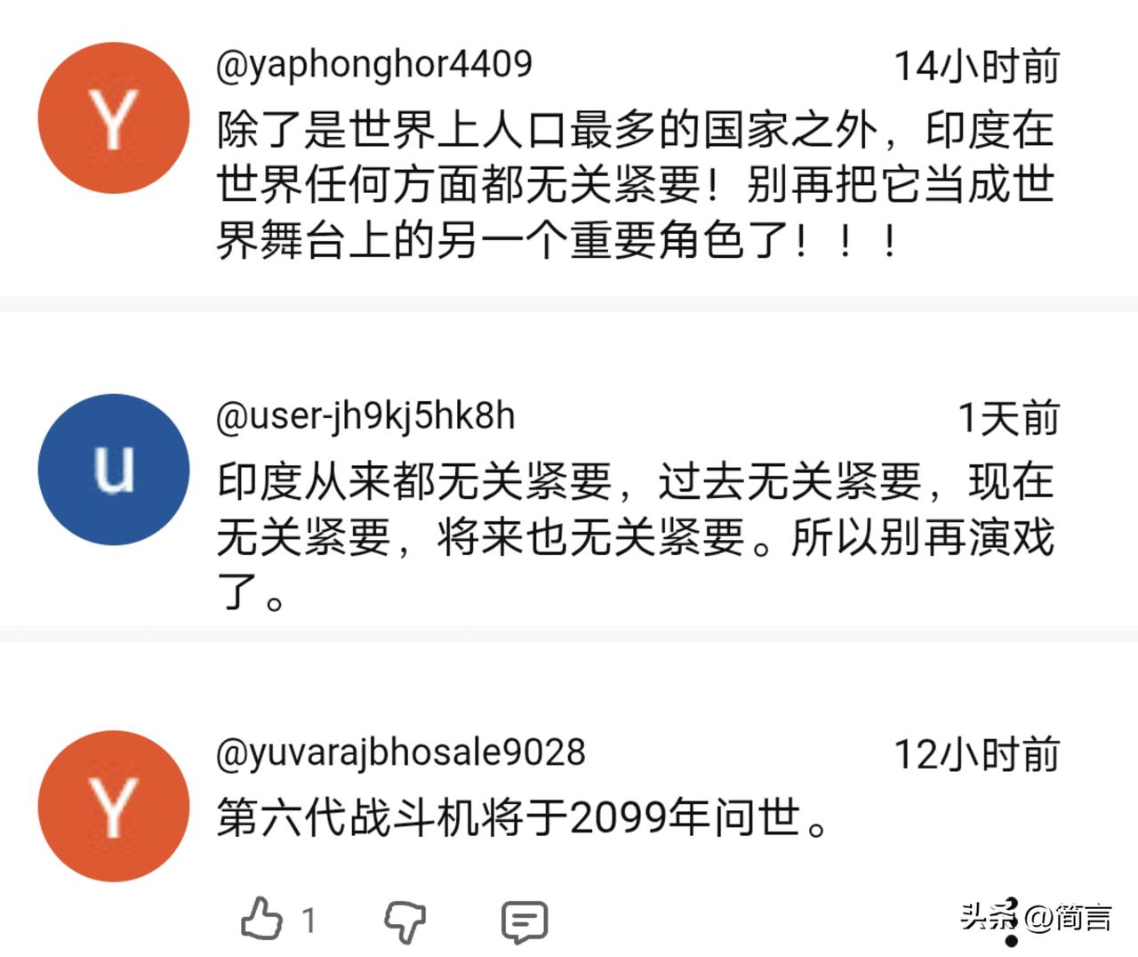 印网友:印度是超级大国,拥有强大的军事力量,所有的人都惧怕印度军队。 近日,一位印博主表示,印度的军事科技在突飞猛进,在未来十年,有望研发出第六代战机、高性能激光武器等大批先进军事装备,并成为全球影响力前三大国。 与这位博主一样,部分印网友对自家的潜力和实力深信不疑,不止是军事科技会来迎来井喷,且军队的战力同样名列榜首。而其他老外则的声音,则这部分网友完全相反。 “光辉”战机的研发前后耗时40余年。那么,印度真的有能力在2035年以前研发出包括六代机在内的大批先进武器吗?