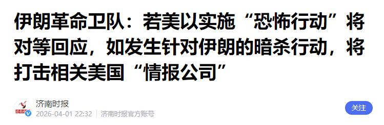 4月2日快讯 伊朗革命卫队 重大宣布 这次美军真是慌了 伊朗革命卫队强硬4月1日发声:若伊朗遭遇暗杀行动,将直接打击美国“情报公司”!随后美军紧急否认参与相关行动,但伊朗立刻反击,称握有“不可辩驳的证据”,指责美军已深度卷入恐怖主义联盟。 其实早在3月31日,伊朗就已经发出过警告,明确将中东地区与18家美国信息通信技术和人工智能企业有关的机构,列为合法打击目标,涉及思科、惠普、英特尔等知名企业,还提醒这些机构的员工赶紧离开工作场所,周边1公里的居民也尽快撤离,可见伊朗这次是做足了准备,不是随口放狠话。 伊朗的声明刚一发布,美军就立刻慌了,紧急站出来否认,说自己没有参与任何针对伊朗的暗杀行动,还辩解说美军从来不会以平民为目标。 这套否认的话术,美军其实以前用过很多次,之前伊朗指责美军参与暗杀本国核科学家,美军也是这样一口否认,白宫、美国国防部还先后出来表态,说和暗杀事件没有任何关系,但明眼人都清楚,美国在中东一直没闲着。 美国中情局有个叫“黑袋”的行动,就是专门在世界各地搞间谍活动,闯入目标家中安装窃听器、拷贝机密文件,近十多年来,在中东地区实施了上百次这样的行动,目的就是搜集伊朗等国的情报。 而且美国还和以色列深度合作,以色列摩萨德长期在伊朗渗透,窃取伊朗核活动档案、建立秘密无人机网络,这些都是公开的事实,美军现在的否认,说白了就是怕伊朗真的动手。 面对美军的狡辩,伊朗没有丝毫退让,立刻展开反击,明确表示自己握有“不可辩驳的证据”,指责美军已经深度卷入恐怖主义联盟。 伊朗之所以这么有底气,就是因为他们掌握了美以策划暗杀行动的关键证据,而且之前也多次抓捕过美国安插的间谍,捣毁过美以在伊朗的秘密据点,对美国的情报渗透和暗杀图谋了如指掌。 大家都能看出来,美军这次是真的慌了,以前他们仗着自己的军事实力,在中东肆意挑衅、搞暗杀、搞制裁,从来没把伊朗的警告放在眼里,可这次伊朗的态度异常坚决,直接把打击目标对准了美国的情报公司,这可是美国在中东搞情报活动的核心力量,一旦被打击,美国在中东的情报网络就会彻底瘫痪,损失不可估量。 更让美军忌惮的是,伊朗说到做到,之前因为美军暗杀苏莱曼尼,伊朗就直接向美国驻伊拉克的两个军事基地发射了十几枚弹道导弹,给美军造成了不小的损失。 这次伊朗明确放出狠话,只要遭遇暗杀就动手,美军很清楚,伊朗绝对不会只停留在口头警告,一旦真的触发反击,美国在中东的利益会受到严重冲击,甚至可能引发更大规模的冲突。 其实这件事,本质上就是美国在中东推行霸权主义的又一个缩影,美国一直想通过各种手段打压伊朗,控制中东的石油资源和战略要地,暗杀只是他们众多手段中的一个。 而伊朗这次的强硬发声,就是要告诉美国,伊朗不是好欺负的,不管对手多强大,只要敢触碰伊朗的底线,敢危害伊朗的国家安全,伊朗就会毫不犹豫地反击,哪怕是直面美军也绝不退缩。 现在,美伊之间的局势变得越来越紧张,美军的紧急否认,恰恰暴露了他们的胆怯,他们看似强大,其实最怕的就是伊朗这种不计后果的坚决反击。 伊朗握有证据,态度坚决,而美军则陷入了被动,既不敢承认自己的图谋,又怕伊朗真的动手打击美国情报公司。 这件事虽然只是美伊之间的一次正面交锋,但也反映出中东地区的博弈已经进入了更激烈的阶段,美国的霸权主义行径,正在遭到越来越多国家的反抗。 伊朗用实际行动表明,捍卫国家主权和安全,从来都不是一句空话,而美军的慌乱,也让我们看到,再强大的霸权,在坚定的反抗面前,也会露出软肋。