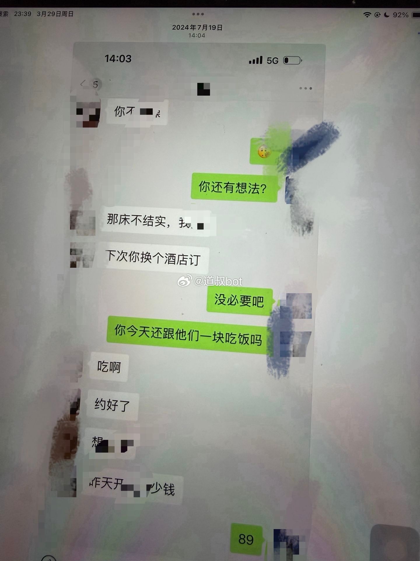 网友爆料,小三发给老公的聊天记录“床不结实,下次换个酒店”