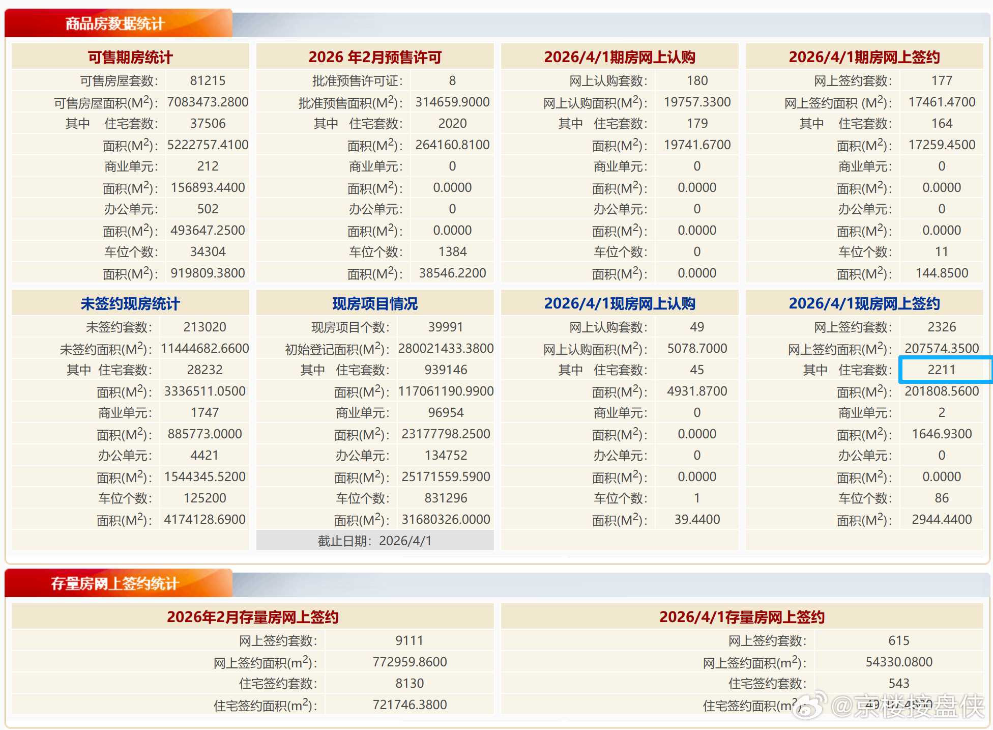 4月首日的现房网签量惊人,2211套,3月的期房现房总网签量才3552套,占比已经是3月新房网签量的62%北京楼市北京新楼市