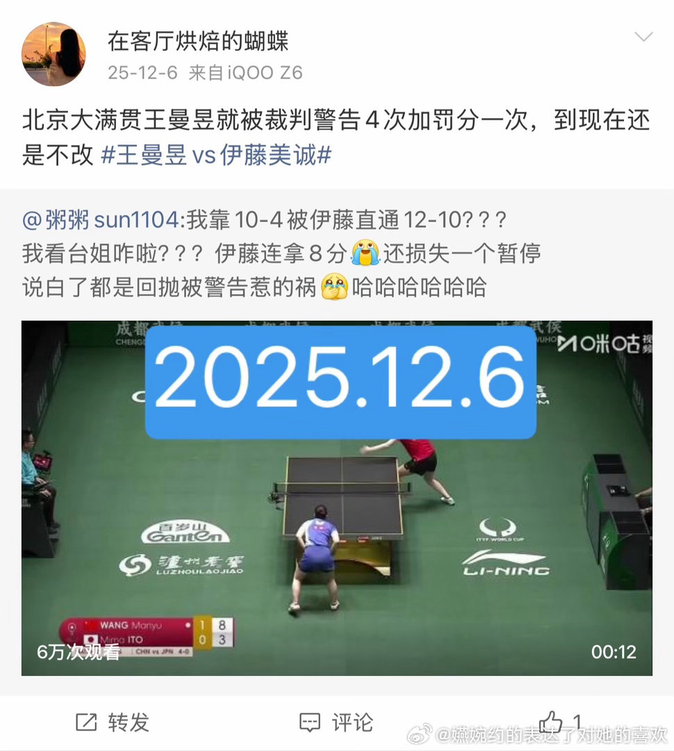 每次看王曼昱粉丝大喊打球干干净净的人得到一切,乒乓女神保佑干干净净的人,都觉得是世界上最好笑的事情