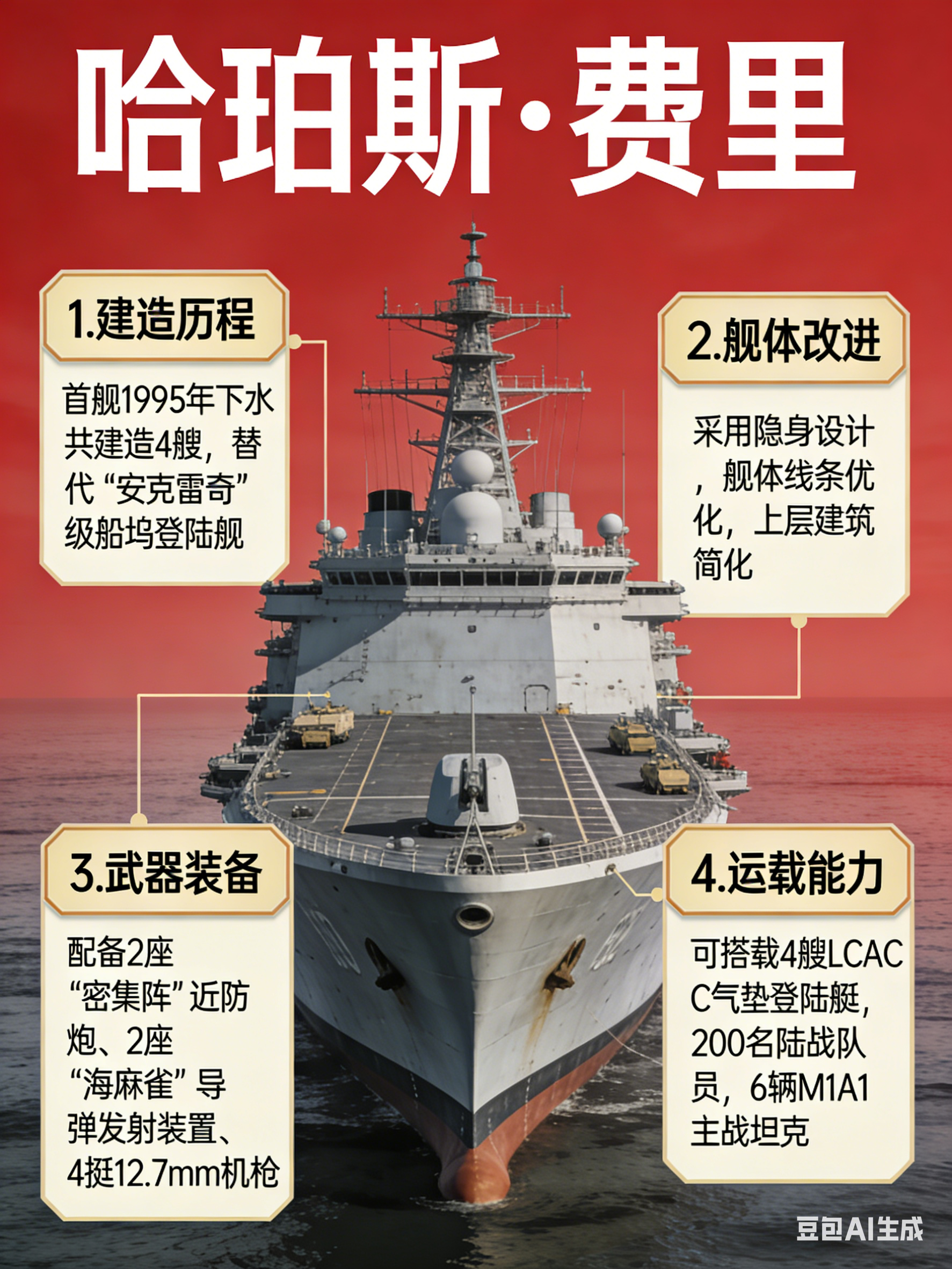“哈珀斯·费里”级船坞登陆舰是美国目前最新的船坞登陆舰,主要使命是配合两栖攻击舰进行大规模快速登陆。