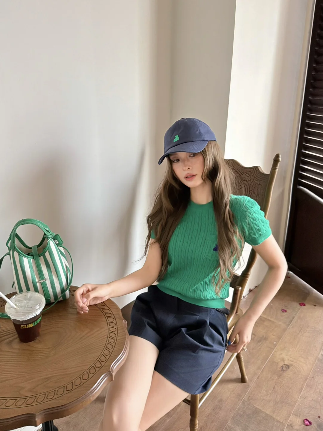 春夏喜欢用色彩点缀穿搭🌿 今天这期是绿色系穿搭喔 TeenieWeenie凯利绿千金微光衬衫深得我心 轻盈的亚麻衬衫搭配凯利绿元气轻织 随行中带着点俏皮灵动 就这样大步迈向春天🍃🧸