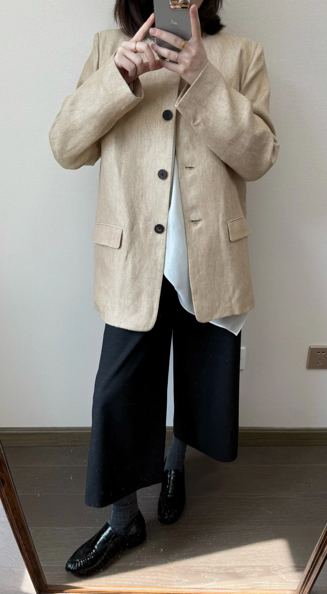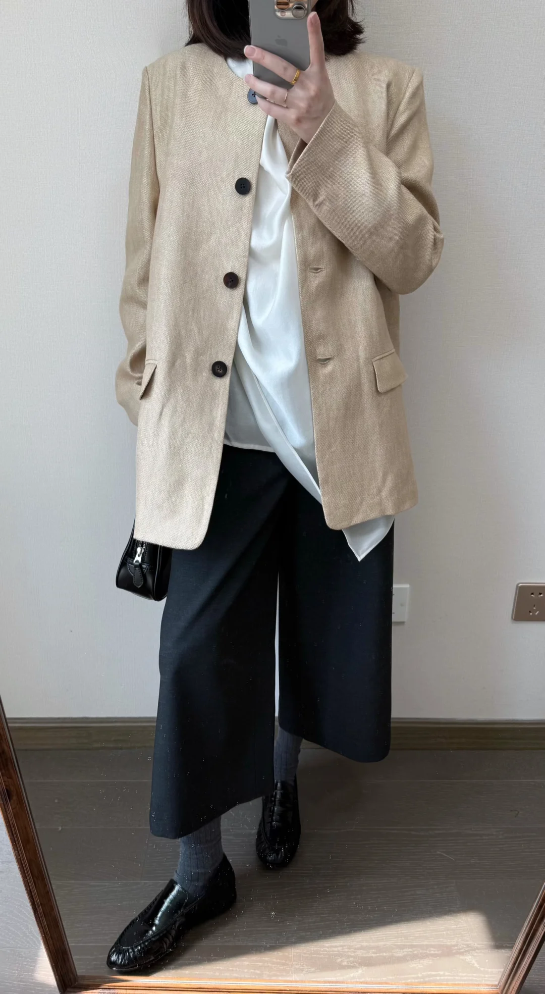 早春穿什么🍨/亚麻棉外套和牛仔阔腿裤