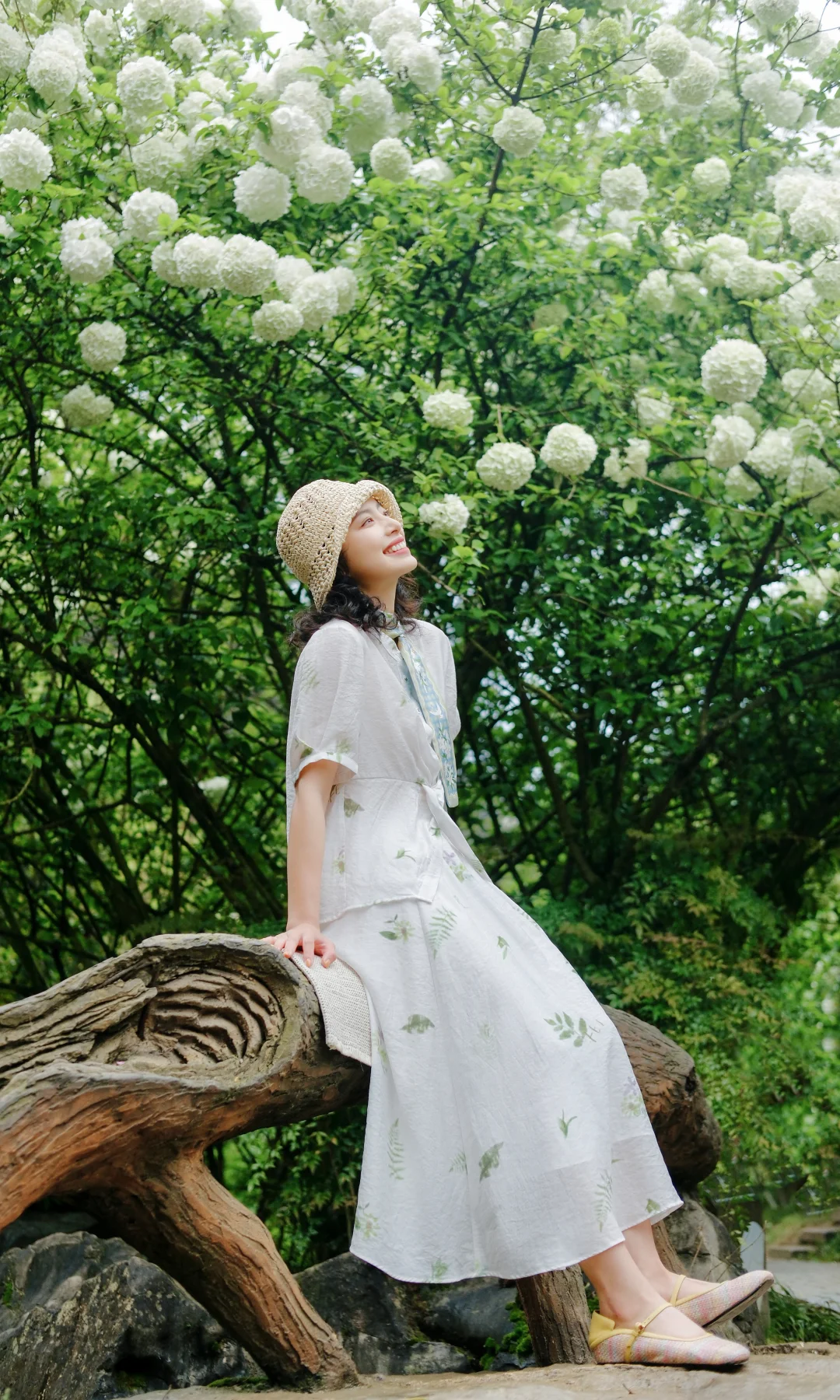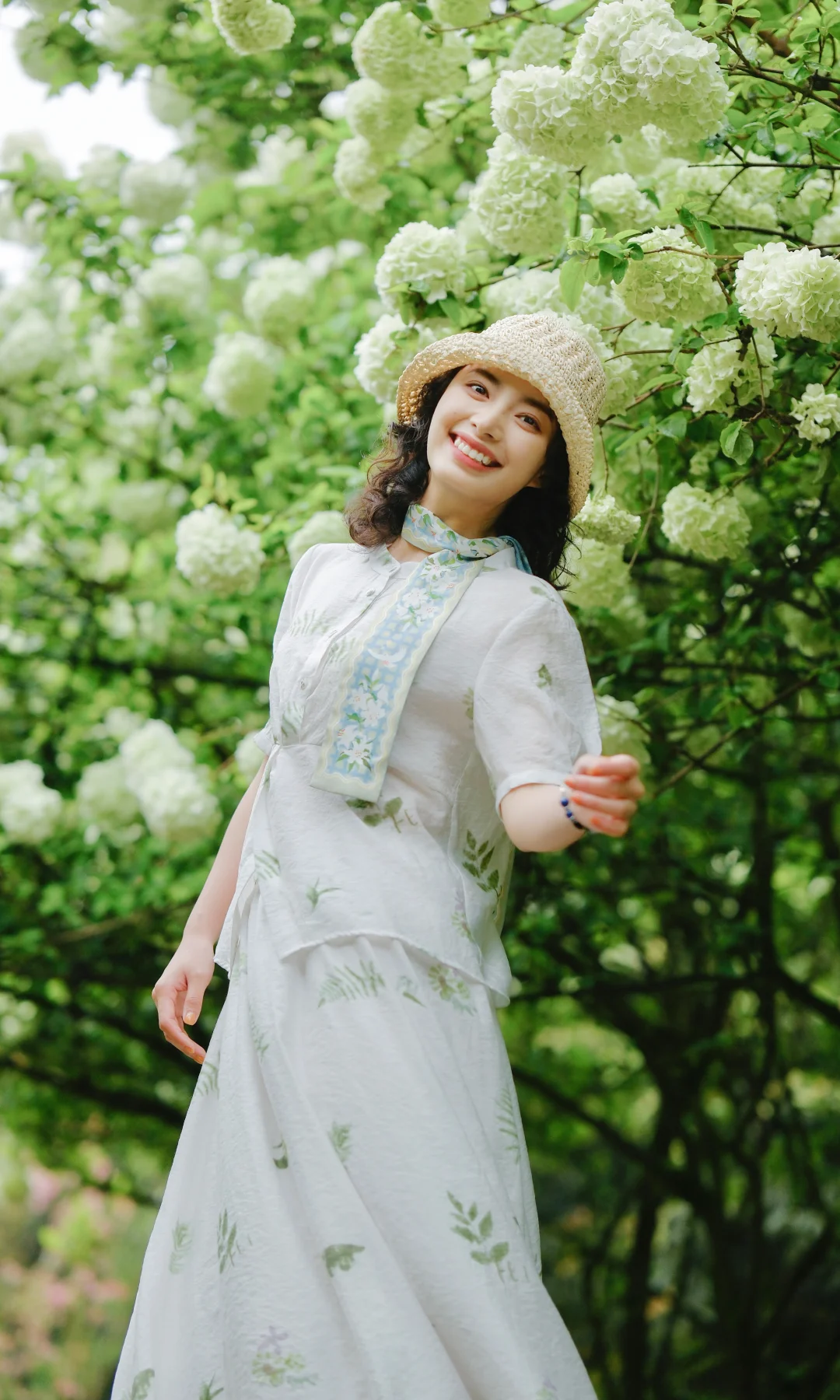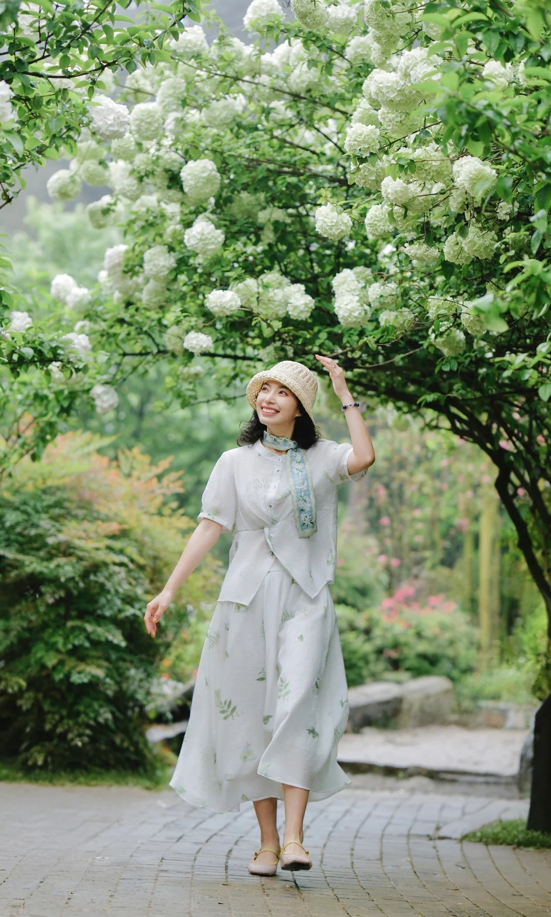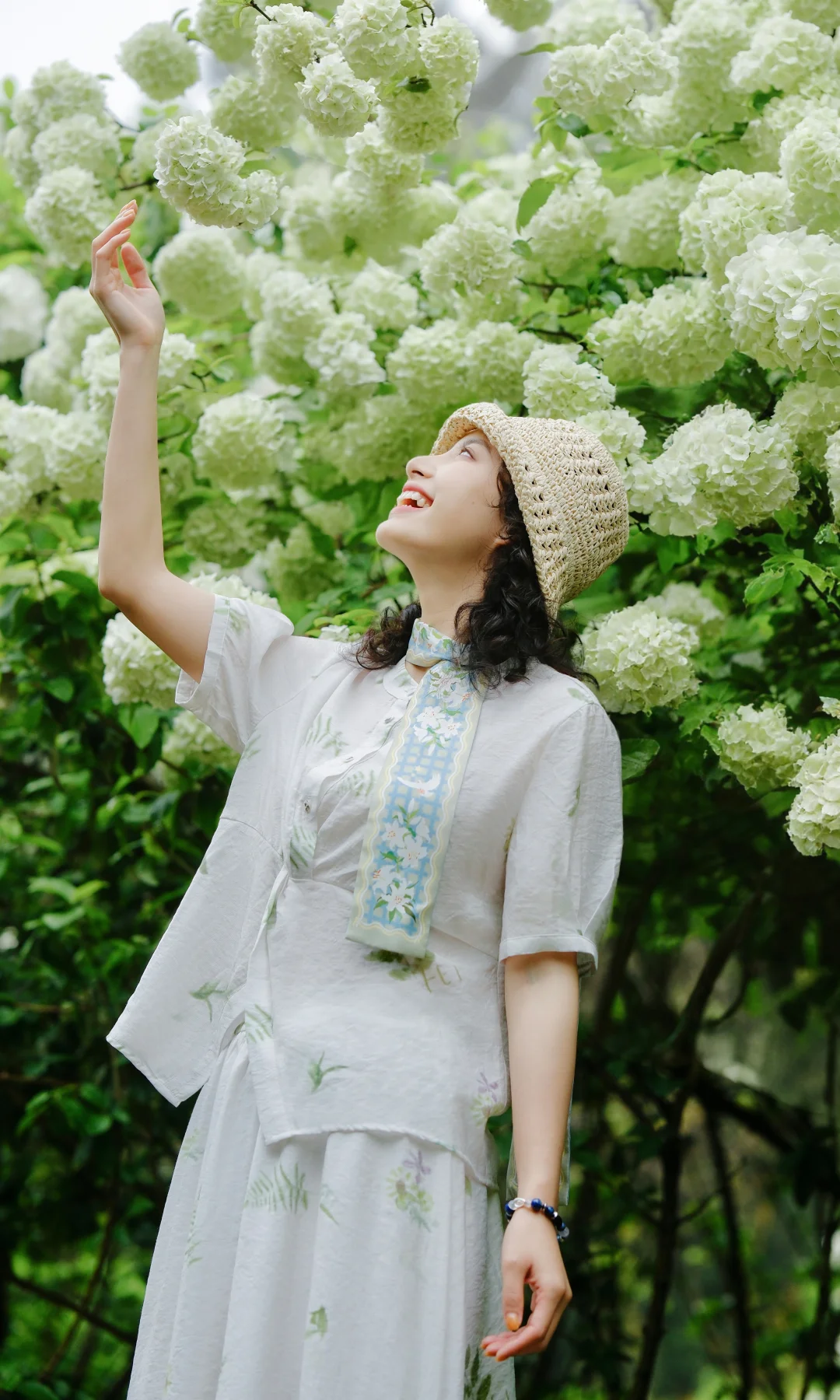 1️⃣站在大棵的绣球花下,前后走动,低机位拍摄,能尽可能多地拍到绣球的花冠