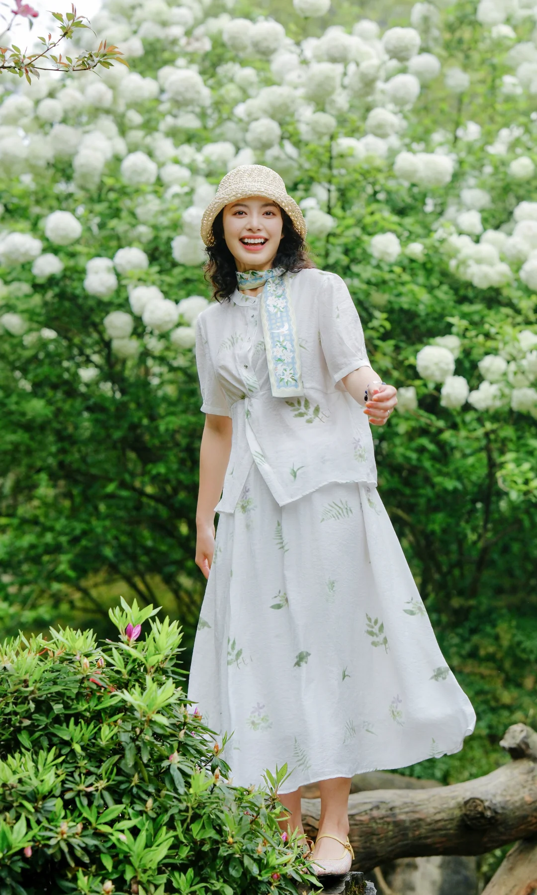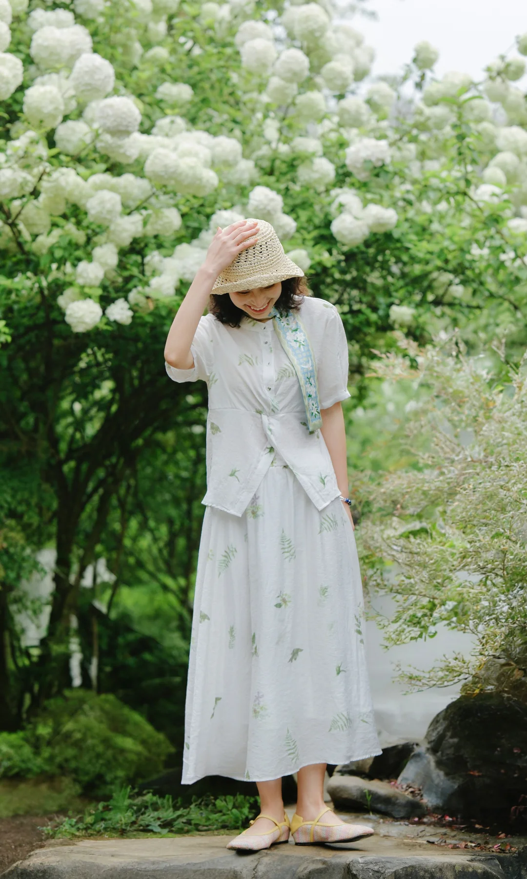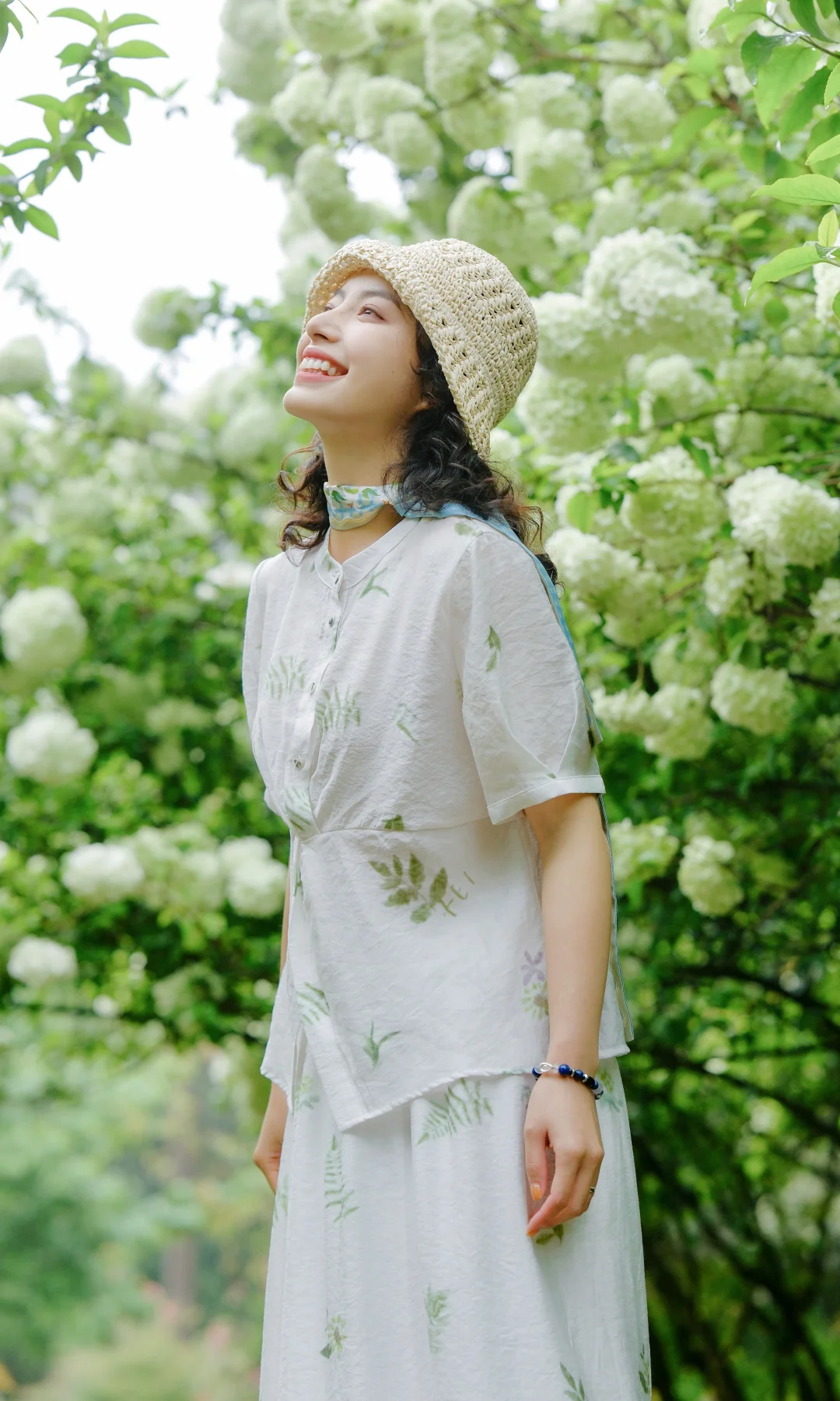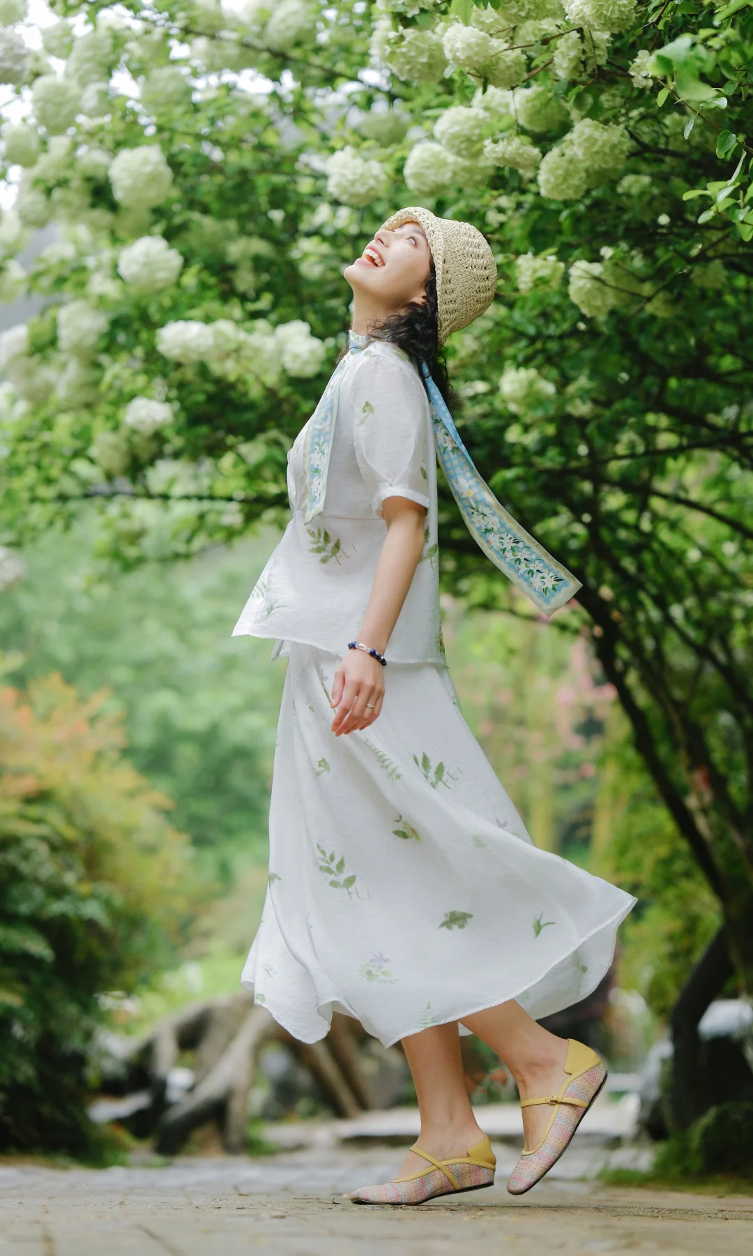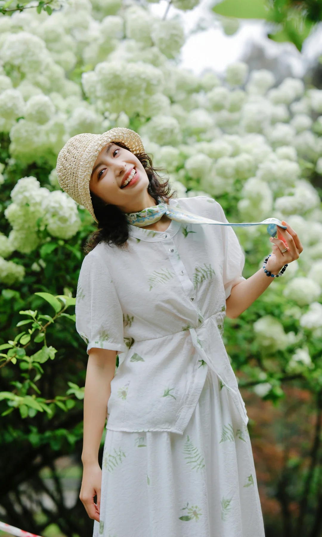 1️⃣站在大棵的绣球花下,前后走动,低机位拍摄,能尽可能多地拍到绣球的花冠