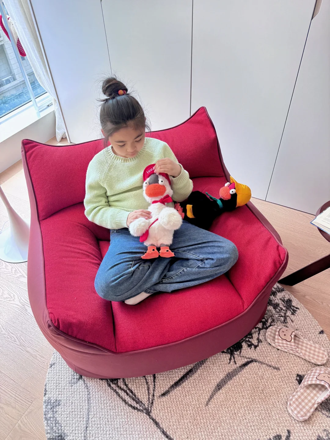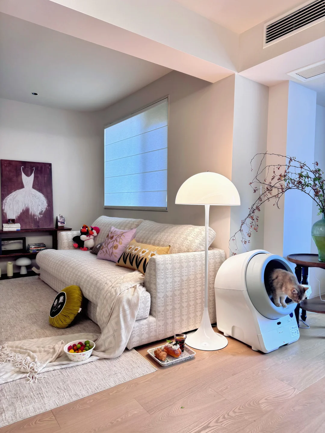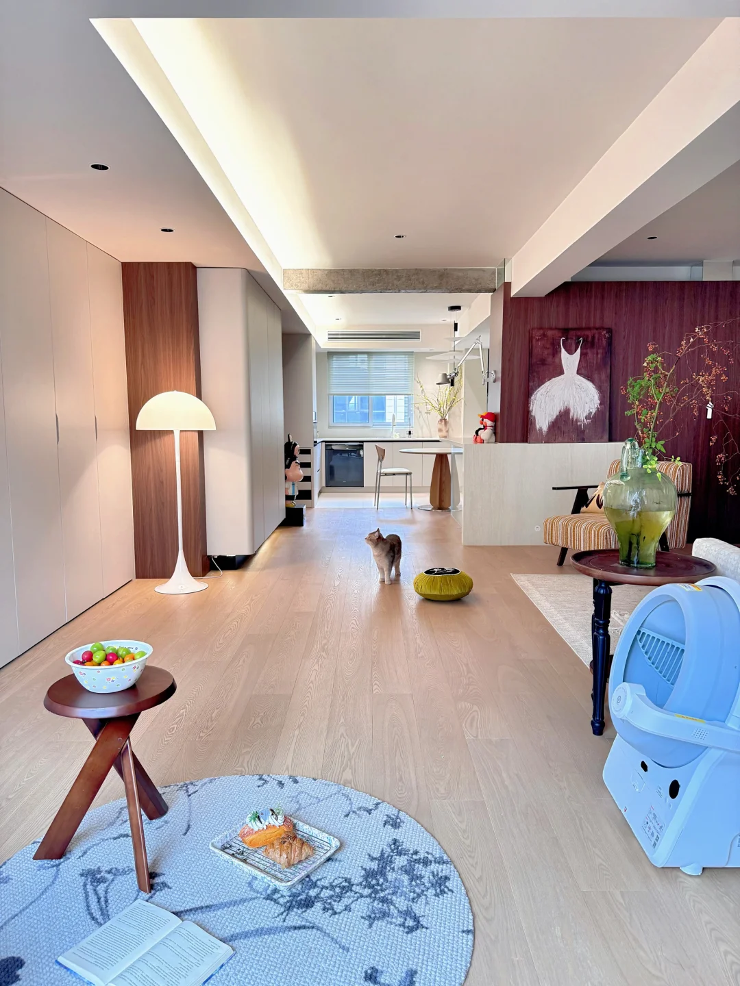 建面122㎡,套内102㎡,入住快一年,越住越爱当初的决定! 放弃一间次卧,换来整个客厅的开阔通透,没有复杂的硬装,通铺的原木地板踩上去踏实又温暖,暖黄的灯光一打开,整个家都裹着温柔的氛围感,真的越住越安心。 家里有两个精力旺盛的小丫头,一只黏人到不行的小猫咪,还有满沙发软乎乎的公仔。 每天下班回家,看着她们在地毯上追着跑,猫咪蜷在我脚边打盹,落地灯漫出暖融融的光,连空气都变得软乎乎的。 不用多有钱,也不用多华丽。 在小县城拥有这样一个满是烟火气的家,有孩子的笑声,有猫咪的呼噜声,有热乎的饭菜,就已经是我能想到的,最踏实、最圆满的幸福了。