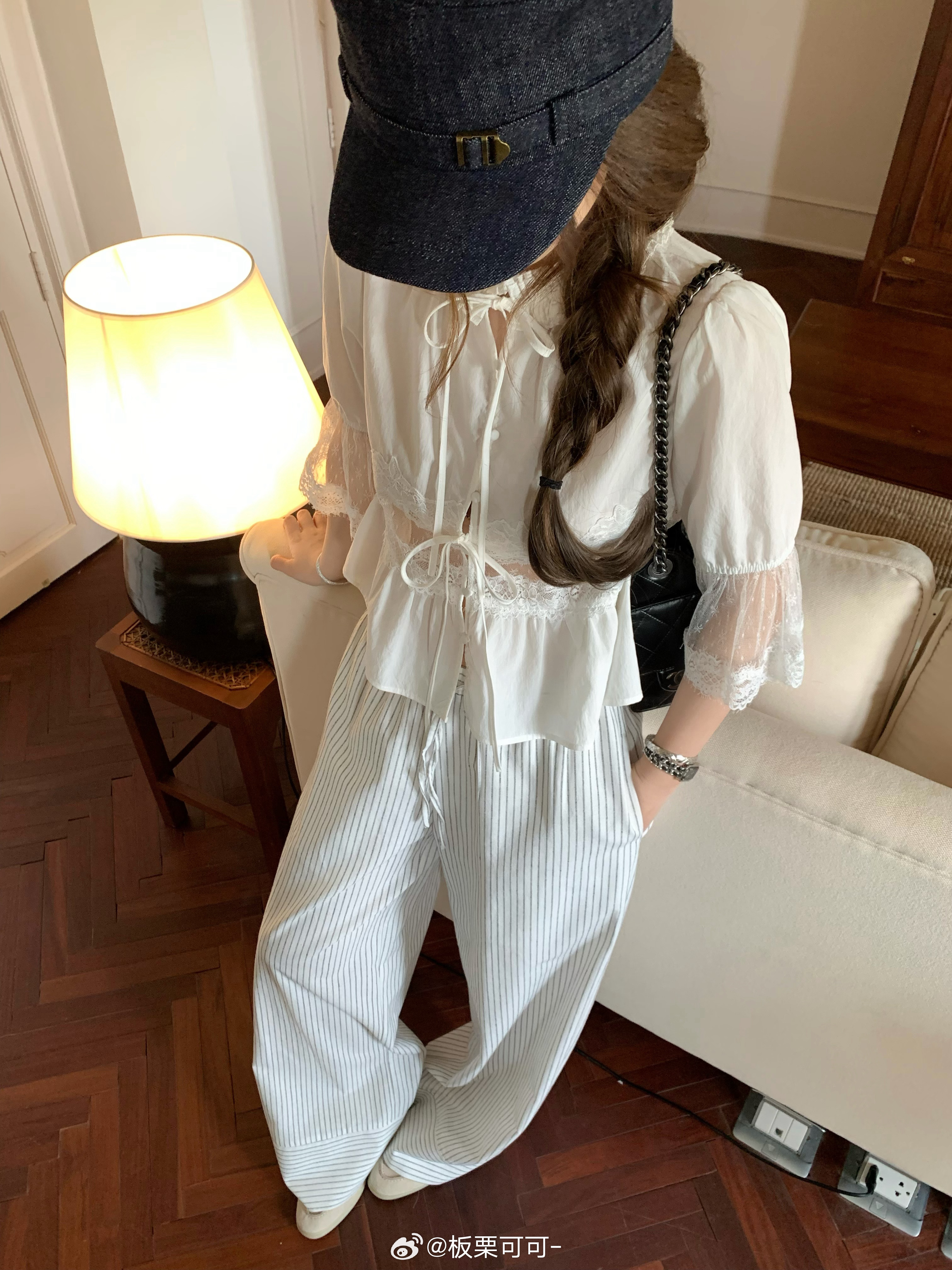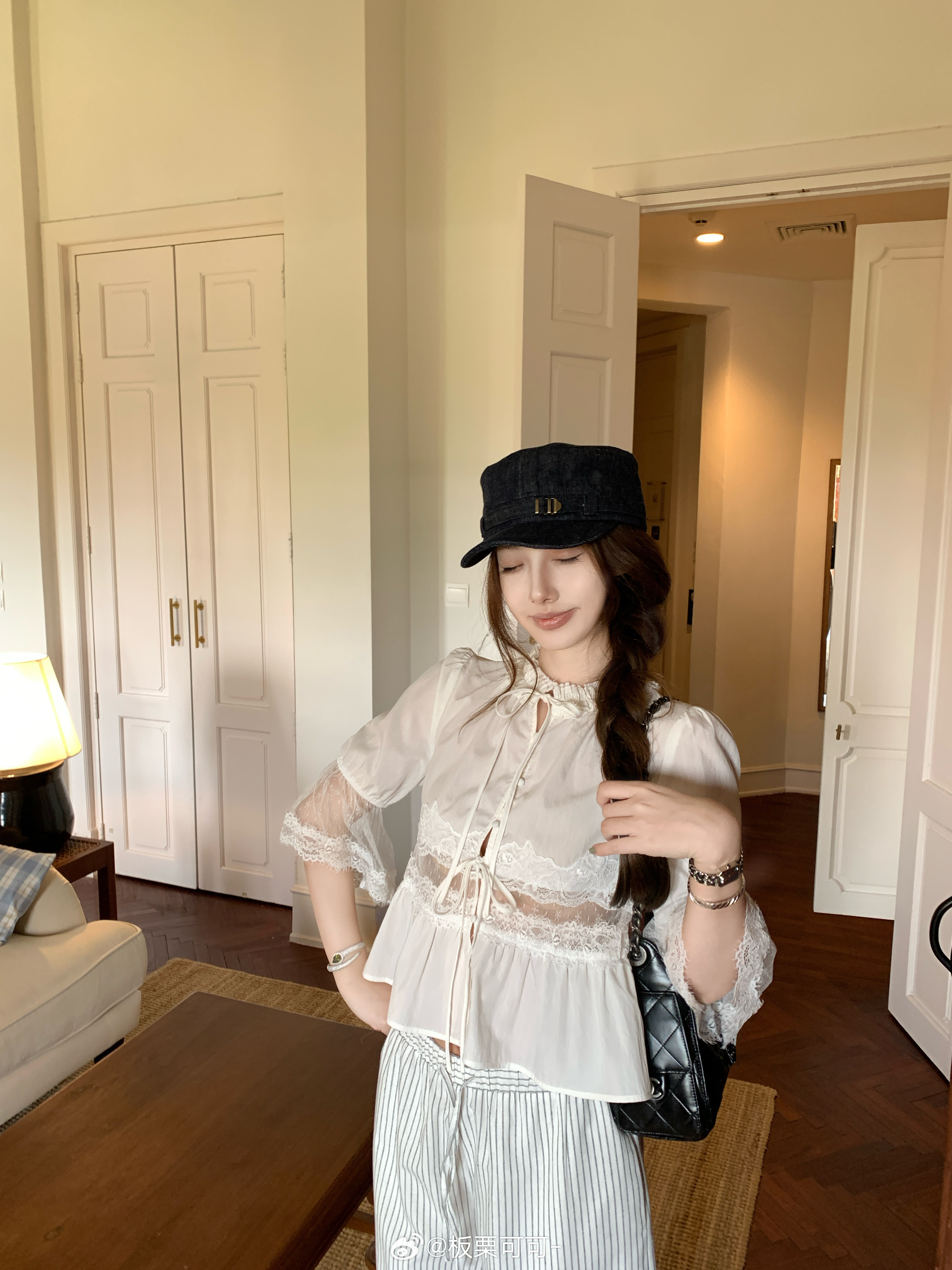板栗可可Bankelili4/7/20:00本期心头好自留了👍🏻对这种自带氛围感的小衫真的是没啥抵抗力花了敲多心思上身拿捏法式lady!!夏天穿也很ok不会闷热的🍃无论是逛街约会都适合的一件小衫!!👍🏻🍎揪3️⃣50⭕️⭕️