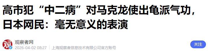 高市早苗又火了! 4月1号,法国总统马克龙到访日本,与高市早苗共同出席媒体见面会!面对记者,二人礼貌性的握手寒暄,这本是很常见的国际惯例! 马克龙是3月31号抵达日本的,开启了为期数日的亚洲之行,随行的还有法国的防长、外长等重要官员,另外还有超过200家法国企业的代表,看得出来,法国这次访日是想深化和日本在政治、经济、国防等多个领域的合作,重点要讨论中东局势、稀土供应、太空合作这些正事。 4月1号的媒体见面会,就是两人会晤后,面向全球媒体展示法日合作姿态的重要场合,现场有很多各国记者,全程都在镜头记录下进行。 见面会一开始,一切都按国际惯例来,高市早苗和马克龙面带微笑,礼貌性地握手寒暄,互相问候,言语间也都是关于双边合作的客套话,氛围看起来很融洽。 这种级别的外交场合,每一个动作、每一句话都代表着国家形象,所以双方都表现得很稳重,在场的记者也都在正常记录,没人想到接下来会发生意外。 可万万没想到,就在两人松开手,准备继续面对记者发言的时候,令人大跌眼镜的一幕出现了。高市早苗突然收起了脸上的严肃表情,对着马克龙做出了一个奇怪的动作——双手向前伸出,手掌相对,摆出了日本经典动漫《龙珠》里孙悟空的“龟派气功”姿势。 这个动作来得太突然,没有任何预兆,现场的记者们都愣住了,纷纷停下手中的笔和相机,盯着两人的方向。 最尴尬的还要数马克龙,他显然没料到高市早苗会在这种场合做出这样的举动,当场就愣在原地,脸上露出了惊讶的表情,一时之间不知道该作何反应。 不过后来有人发现,马克龙其实是《龙珠》的忠实粉丝,2024年《龙珠》作者鸟山明去世的时候,他还在社交平台发文悼念,所以愣了几秒后,他也笑着做出了同样的“龟派气功”动作,算是勉强回应了高市早苗的出格举动,才稍微缓解了现场的尴尬。 其实高市早苗做出这种出格动作,并不是偶然,她在政治上一直都很激进,而且经常有反常举动。了解她的人都知道,她是出了名的右翼政客,多次参拜靖国神社,公然否认日本的侵略历史,还否认“慰安妇”的存在,甚至公然践踏“村山谈话”“河野谈话”,一直鼓吹扩军备战,推动修改日本和平宪法,试图让日本拥有“对敌基地攻击能力”。 就在这次马克龙访日之前,高市早苗还闹过一次外交笑话。她之前访美的时候,在白宫参观,路过一张用来嘲讽美国总统拜登的照片时,当场哈哈大笑,还用手指着照片,被网友质疑是在附和特朗普、嘲讽拜登,后来被日本在野党追着问责,她只能牵强辩解说是被误解,根本没人买账。 除此之外,她还因为发表涉台错误言论,遭到中国方面的强烈抗议,也引发了日本国内有识之士的不满,不少民众举行集会,要求她下台。 这次马克龙访日,本来是法日深化合作的重要机会,双方本来计划在稀土开发、太空合作、核能开发等领域达成多项协议,可高市早苗的这个举动,却让这场严肃的外交访问,多了几分荒诞的色彩。 法国内舆论本来就对法日在外交和安全领域的合作持谨慎态度,认为日本对法国缺乏合作诚意,比如日本在下一代战斗机研发上,就选择了英国和意大利,没有带上法国,这次高市早苗的出格举动,无疑会让法方更加疑虑。 有人分析,高市早苗之所以这么做,大概率是想博眼球、拉人心,毕竟她在日本国内的支持率一直不高,国内民众对她的扩军政策、漠视民生的做法早就不满,她可能想通过这种看似“亲民”“有趣”的举动,改善自己的形象。 可她忘了,自己是一国首相,在正式的外交场合,每一个举动都代表着日本的国家形象,这种不合时宜的动作,不仅没有起到正面作用,反而让外界看到了她的不专业,也让日本的外交形象受到了影响。 现在的高市早苗,其实已经陷入了两难境地。对外,她既要紧紧依附美国,维护日美同盟,又想拉拢欧洲国家,拓展日本的外交空间,可频频出现的外交翻车,让日本的国际形象受损;对内,她执意推进扩军,部署远程导弹,挤占民生资源,引发了民众的持续抗议,政府的公信力越来越低。
