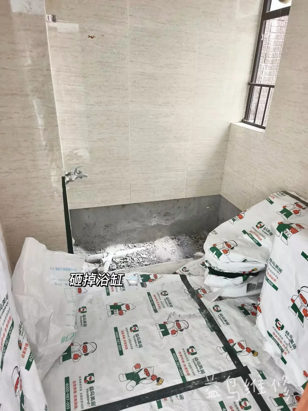 🔎成品保护+浴缸拆除:先做好卫生间原有家具、墙面的保护,避免施工损坏,再彻底拆除浴缸及周边多余构件,清理干净建筑垃圾;