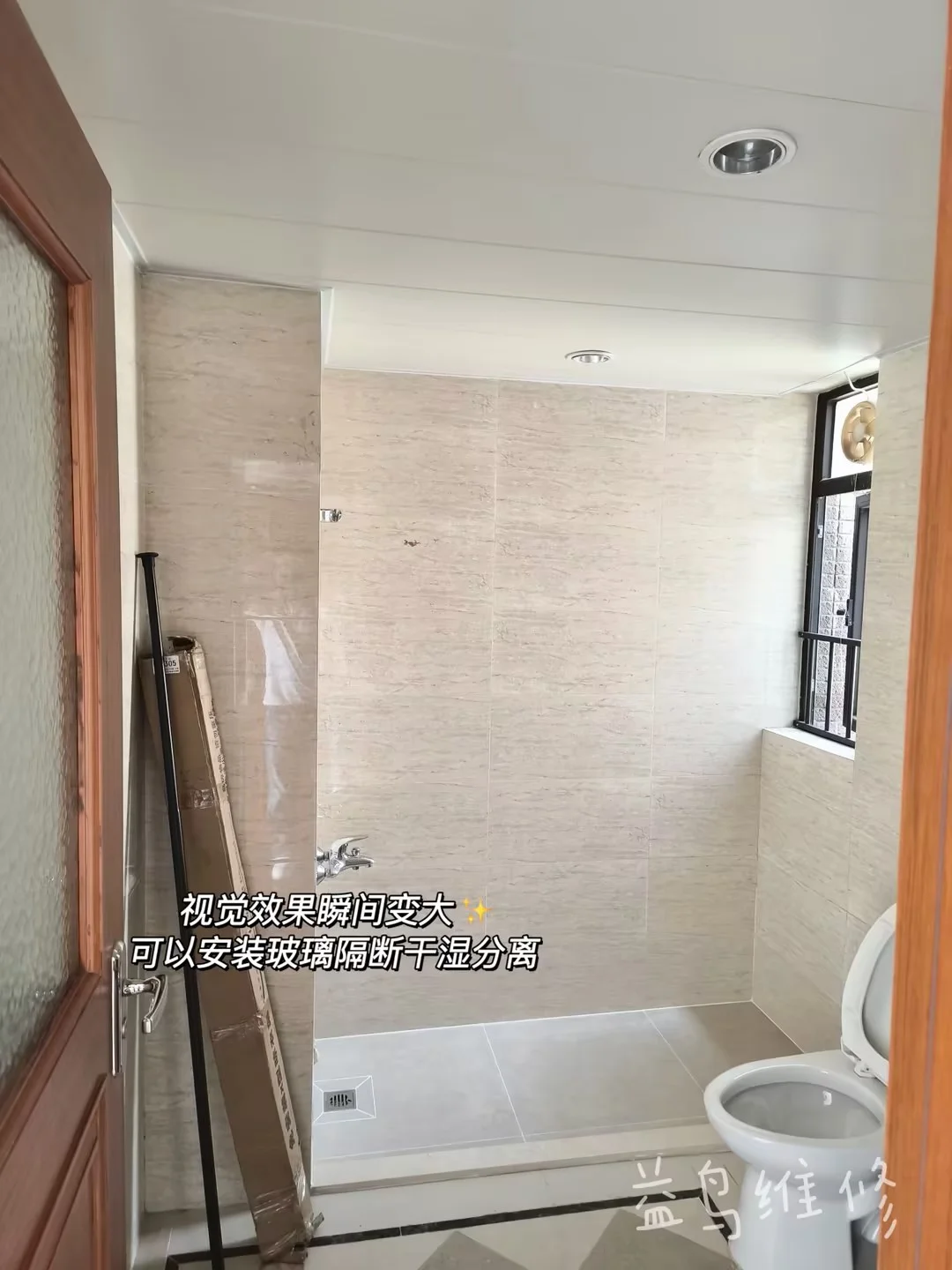 🔎安装玻璃隔断:最后安装玻璃隔断,完成干湿分离,防止洗澡时水汽扩散到整个卫生间。