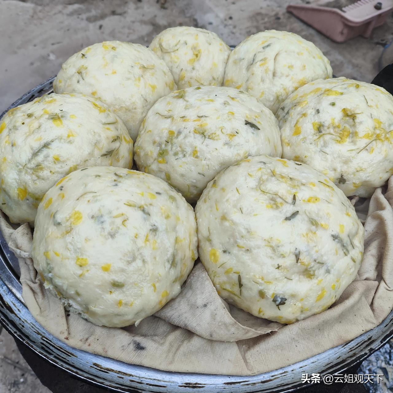 给大家看看,我今天跟着网上刚学会的,油菜花馒头。 地里现在到处都是金灿灿的油菜花,采一把回来, 放在盆里洗干净,放面粉,发酵粉,用温水和面,一个小时多面就开了,揉成馒头剂子,直接上锅蒸25分钟就好了。 吃起来软软的,有一股花香的味道,口感还不错。