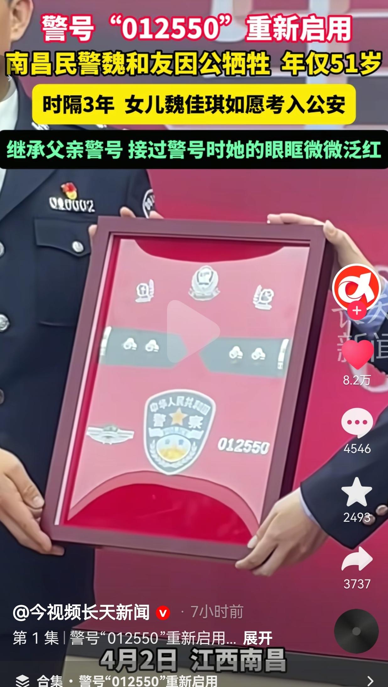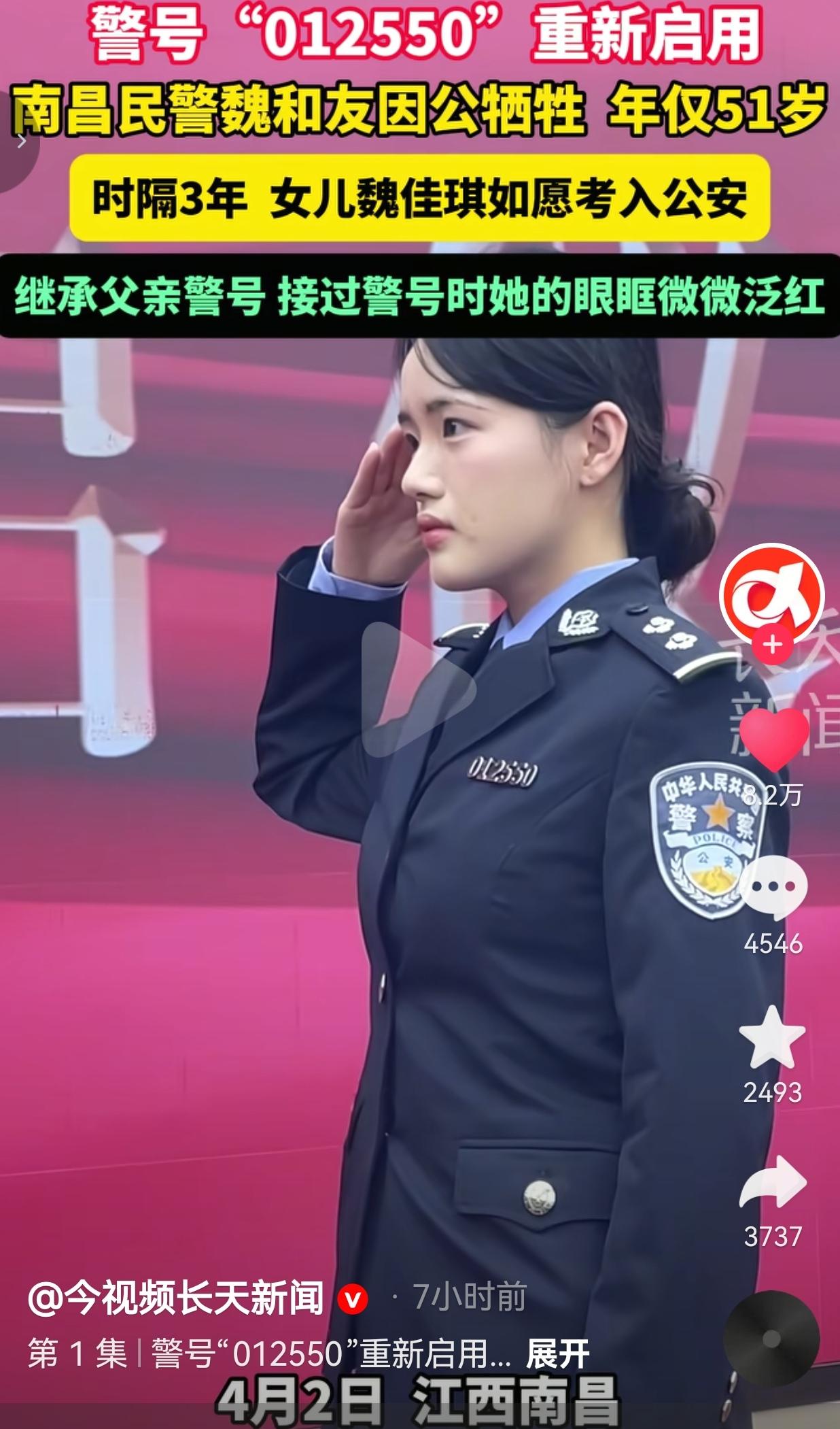 看哭了!这才是刻在中国人骨子里的传承!警号重启的那一刻,是父亲的生命在女儿身上延续,是使命的接力,更是信仰的永生! 江西南昌民警魏和友,一辈子扎根基层,把群众当亲人,把岗位当战场。 51岁那年,他倒在了自己热爱的岗位上,因公牺牲。 他的警号 012550 被永久封存,成了无数人心里一道难以愈合的疤。 谁也没想到,时隔3年,这个警号,再次亮了起来! 魏和友的女儿魏佳琪,凭着一股韧劲,如愿考入公安系统,成为一名人民警察。 在警号重启仪式上,当她接过父亲的警号,亲手别在自己胸前时,这个年轻姑娘眼眶泛红,庄重地敬了一个礼。 她对着镜头说:“对我来说,它不仅是数字的重新启用,更是使命的传承。” 她还一字一句念出父亲生前常说的话:“你与群众有多近,群众与你有多亲。” 这一幕,直接让全网破防! 当年跟在爸爸身后的小女孩,如今穿上警服,接过父亲的警号,继承遗志,继续守护万家灯火。 英雄从未走远,只是换了一种方式,继续守护这座城。 消息一出,评论区直接哭成一片,有的网友说:我哭死!魏警官是我们这儿的好警察,没想到女儿继承了他的警号,这才是真正的传承! 也有的网友说:这就是我考警校的意义!警号重启,是英雄从未离开,是使命代代相传! 还有的网友说:看一次哭一次!爸爸用生命守护平安,女儿用一生接力,这才是中国警察! 也有的网友说:警号可以封存,但精神永不熄灭!向英雄致敬,向传承致敬! 我们总说,哪有什么岁月静好,不过是有人替我们负重前行。 更让人泪目的是,当有人倒下,他的孩子会毫不犹豫接过担子,继续守护这片土地。 警号012550,从来不是一串冰冷数字。它是魏和友一生的坚守,是魏佳琪一生的信仰,是两代人的忠诚,是中国警察最动人的誓言。 有人说,警号重启,就是英雄的第二次生命。 没错,魏和友没有离开,他活在女儿的警服里,活在每一次出警里,活在每一次出警里,活在万家灯火的平安里。 这就是中国警察的传承,这就是中国人的脊梁! 警号可以重启,英雄永不落幕;使命代代相传,信仰生生不息!