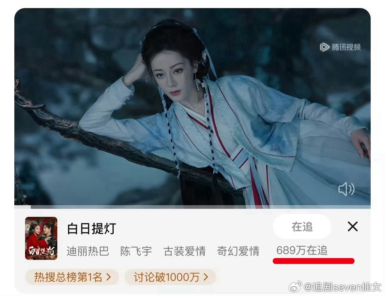 迪丽热巴在腾讯播的几部剧,谁还看不出有热度模型?还以为上部某剧操作后,很多人都对热度祛魅了…热度不就是程序员动动手指的事吗?平台故意热度鬼打墙让粉丝焦虑氪金上供,反正无论怎么做都割大流量,始终是资本赢,白日提灯在追人数都690万了,真金白银的周边更是卖爆了,白日提灯无论数据还是商业价值都是顶级的…是谁家一直在pua我们白日提灯的热度?今年播的剧有氵树六边形扑街剧垫底呢,窝紫演技被嘲,桃开发了一堆周边都卖不掉,开发成本都没回来吧?巴粉还是太仁慈没帮忙宣传,所以zmgg一个月不到就开始岁月史书了?实际上,热巴每部剧都有上财报,无论热度怎么样,也不会影响她接好本子,更不会影响爱看她演戏的剧粉们,商务一如既往地强,内娱也不是因为虚假数据排咖位。近两年迪丽热巴接的剧质量都很高,口碑和演技都在扩圈发酵…真没必要纠结于程序员操控的东西了,不要焦虑,全力托举,开心看剧开心二创,《白日提灯》真的很好看,剧情、演技、特效全方位的强!
