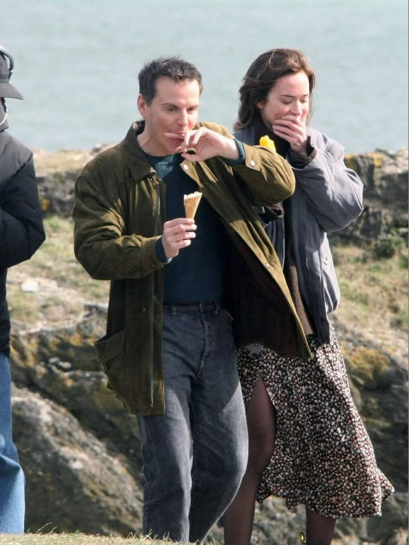 银幕闲话 艾米莉·布朗特和安德鲁·斯科特被拍到在爱尔兰威克洛郡拍摄约翰·克劳利执导的电影《走在蓝色的田野上》