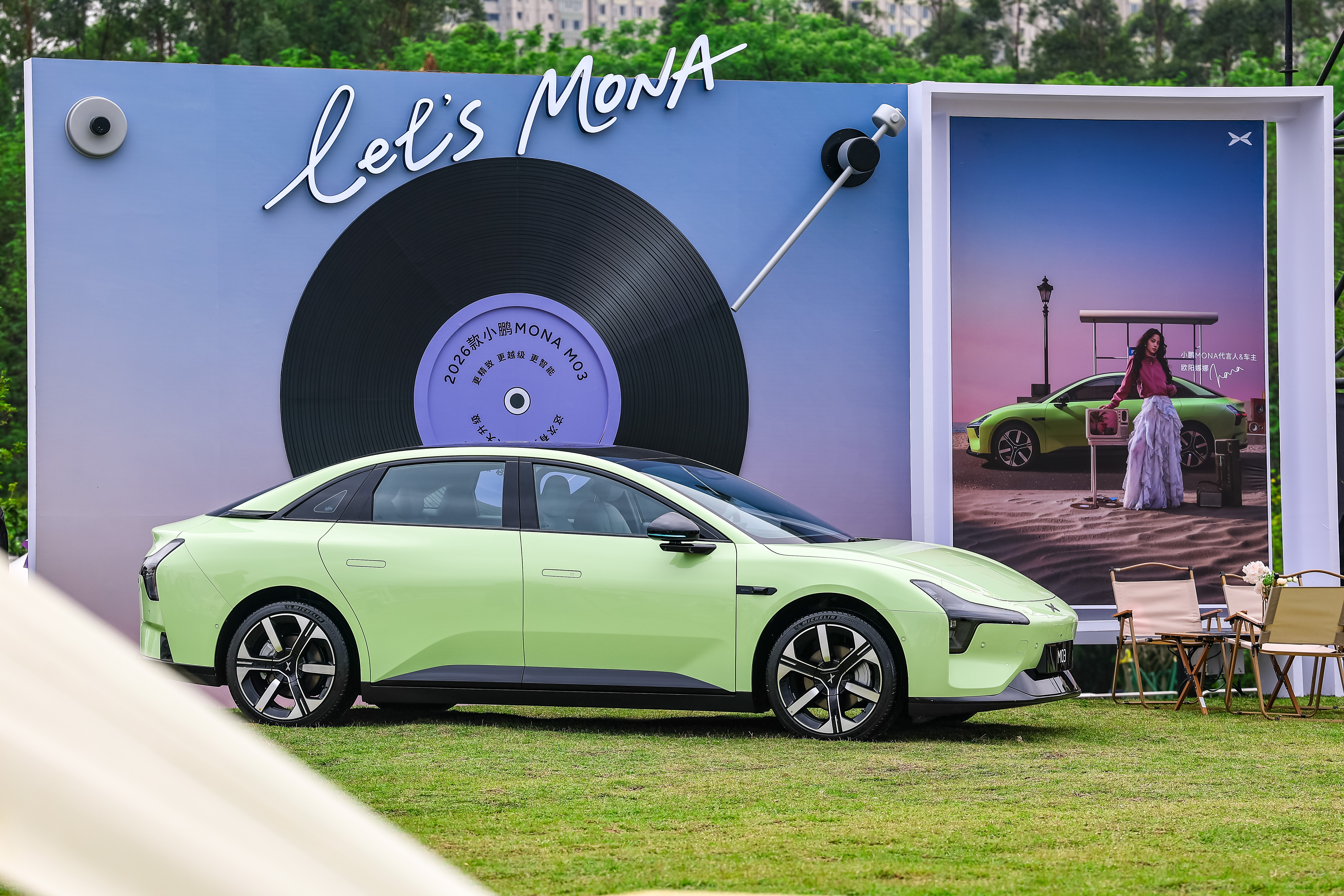 今晚19:30,草地音乐派对,一起见证大大大大大升级!欧阳娜娜开新款MONA冒雨参加发布会2026款小鹏MONA大大大大大升级