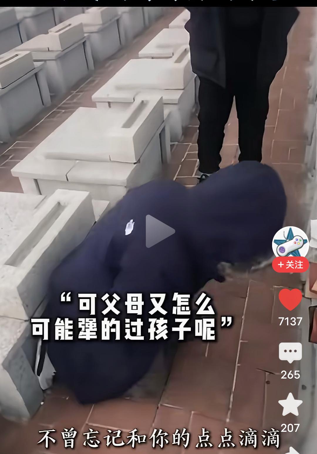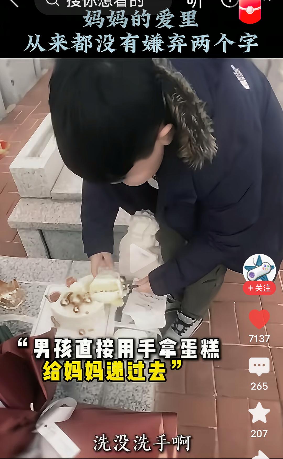 妈妈的爱里,从没有嫌弃两个字! 刷到一个视频,男孩和爸爸去墓地给去