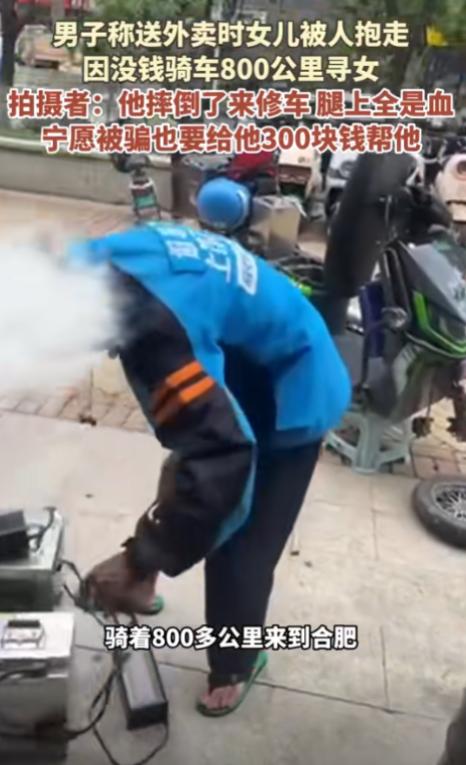 [微风]2024年,外卖小哥带着3岁女儿送外卖,不料,女儿竟被人抱走。外卖小哥6天不眠不休骑行一千多公里,从台州找到合肥,车子摔坏,腿摔伤了,也没找到,但他不愿放弃!   合肥那家修车铺的午后,卷帘门半开着,一个浑身风尘的男人推着辆变形的电动车进来,他没说话,先把手机搁柜台上,屏幕亮着,是个扎马尾的小女孩,笑得眼睛弯成月牙。   "师傅,车还能修吗?"   修车老板看了眼他的腿,血顺着裤子往下滴。   "你这是怎么弄的?"   男人没答,只问:"多久能修好?"   ——后来老板才知道,六天前他还在温州送外卖,女儿三岁,那天下午被他放在电动车后座,进小区送餐,想着就几分钟的事,结果下楼时,后座空了。   监控里有个女人抱走孩子,口罩帽子捂得严严实实,看不清脸,大爷遛弯时倒是瞧见了,说那女人走得急,像在逃命。   小李当时就疯了,满城贴寻人启事,挨家挨户问,一天睡不够三小时,第三天有人说隔壁城市有个小孩像,他连夜赶过去。   第六天,网上有人发消息说合肥见过,小李二话不说,骑着破电动车就出发,整整一天一夜,愣是没合眼。   到合肥时天都黑了,车摔坏好几回,腿上的伤是摔出来的,他推着车找了家修车铺,老板听完他的故事,半晌没吭声,然后蹲下身检查他的腿,膝盖上全是血口子。   "你这要缝针。"   "先修车,"小李打断他,"贵州那边又有线索了。"   老板愣住了:"贵州?你打算骑电动车去贵州?"   "那可上千公里啊。"   老板眼眶红了。他没收修车费,还把口袋里三百多块钱全掏出来,硬塞进小李口袋。   "找孩子是长期的事,"他说,"钱多着呢。"   小李不要,老板直接把钱塞进去,转身摆摆手,小李站在修车铺门口愣了好一会儿,然后推着修好的车走了。   后来,他的事在网上炸开了,货车司机说在服务区见过他,趴在电动车上睡,旁边放着女儿的照片,加油站员工说,他充电时一边看女儿视频一边掉眼泪。   有丢过孩子的妈妈留言,说自己找了三年才找到,"告诉小李别放弃",还有人直接开着车去各地帮忙找,建了微信群,实时更新线索。   小李手机里全是女儿的照片和视频,离婚后前妻走了,他一个人带着孩子跑外卖,女儿很乖,每次坐后座都会喊"爸爸加油"。   现在他每天给女儿的玩具熊录音,轻声说"宝贝,爸爸还在找你",电动车已经换了三块电池,轮胎磨得厉害,但他说,只要还有一丝希望,就会一直找下去。   "我最怕的不是找不到,"他说,"是怕她受苦。她才三岁,离开爸爸会害怕的。"   合肥的夜风里,他攥着手机,看着女儿的照片,然后跨上电动车,消失在路灯尽头的黑暗里。  主要信源:洛阳网《拍摄者:很多人说他是骗子,我宁愿被骗也要给他300块钱帮一下。》