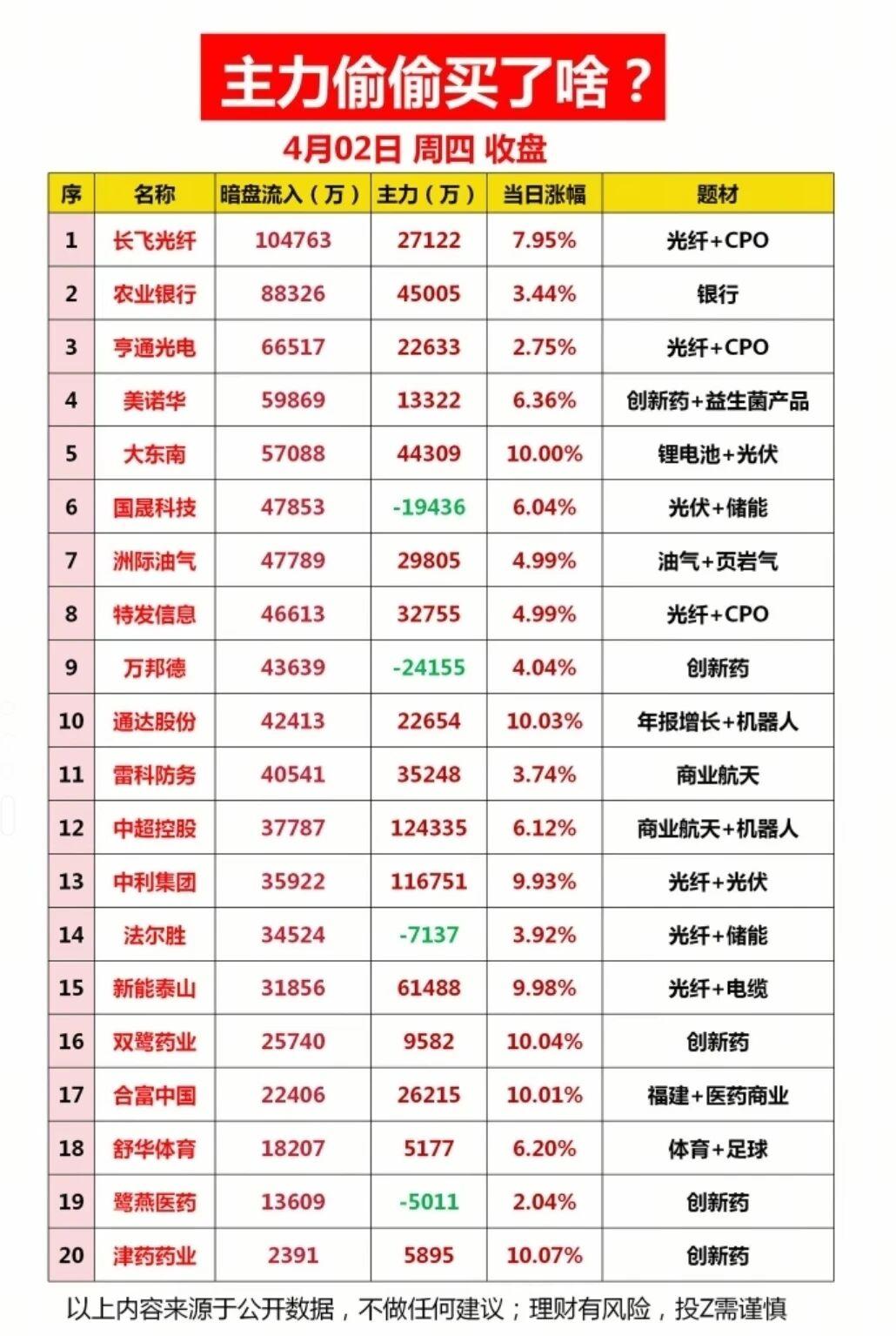 04.02盘面复盘:资金调仓换股,主线轮动加速! 板块与个股端尽显博弈热度:主力