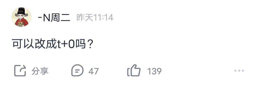 N周二昨天发文:可以改成t+0吗?