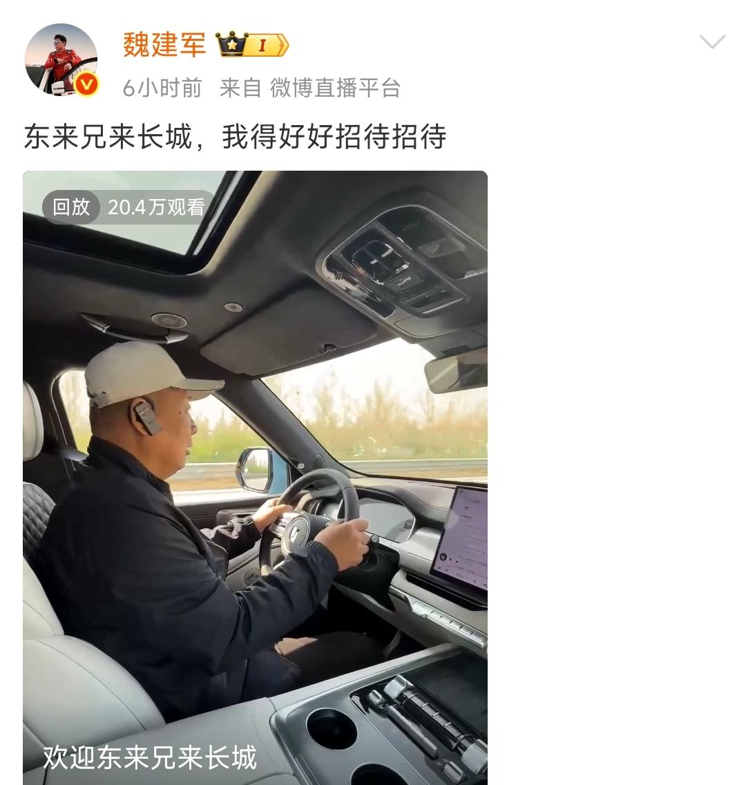 魏建军请于东来吃驴火,两个大佬,一个造车出身,一个做零售起家,都是用良心做好产品,厚道实在有担当的企业家,这波跨界营销带火了坦克700,老魏说保定缺胖东来超市,于东来说郑州胖东来会把最好的位置就给长城。 今天的合体直播你给打几分?