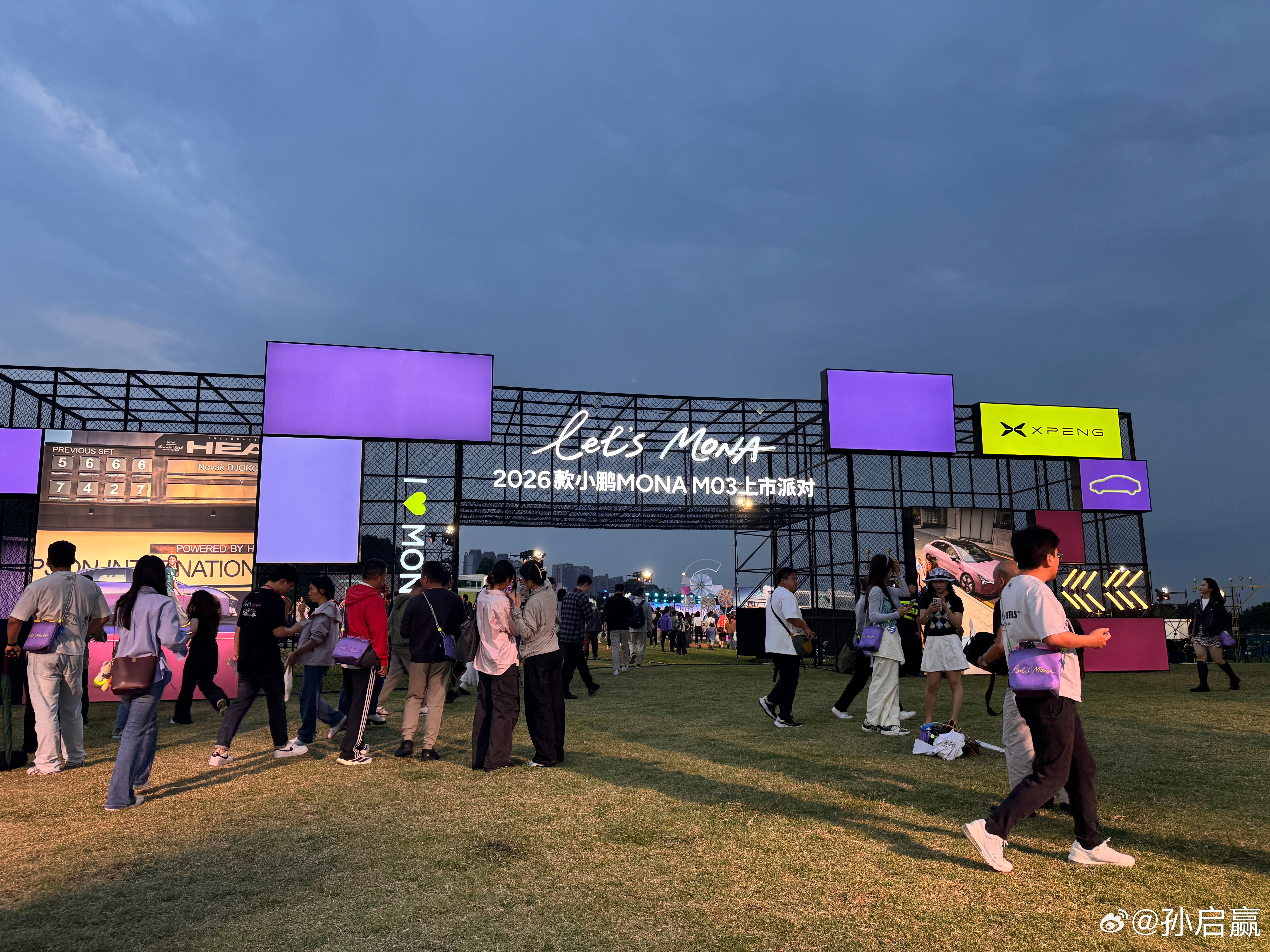 小鹏越来越会玩了,全新mona发布会搞得跟个音乐节一样,人山人海热闹非凡。无处不在美女潮男,这样的活动好啊,身处其中感觉自己年轻了十几岁。总部对面就是大公园大片草地,下楼就是音乐节现场,放眼全国的车企应该也只有小鹏了。欧阳娜娜开新款MONA冒雨参加发布会2026款小鹏MONA大大大大大升级 广州·科韵公园