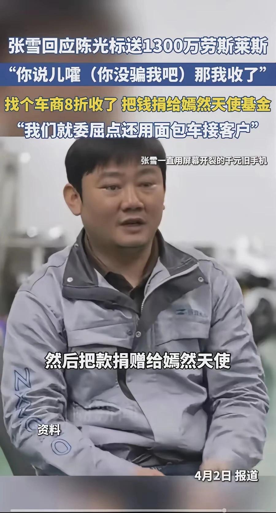 张雪有点飘了! 陈光标完全是一片好心,张雪这样做狠狠打了他的脸。 道不同不相为谋,直接婉拒就是,何必卖车捐款呢? 太过分了吧!
