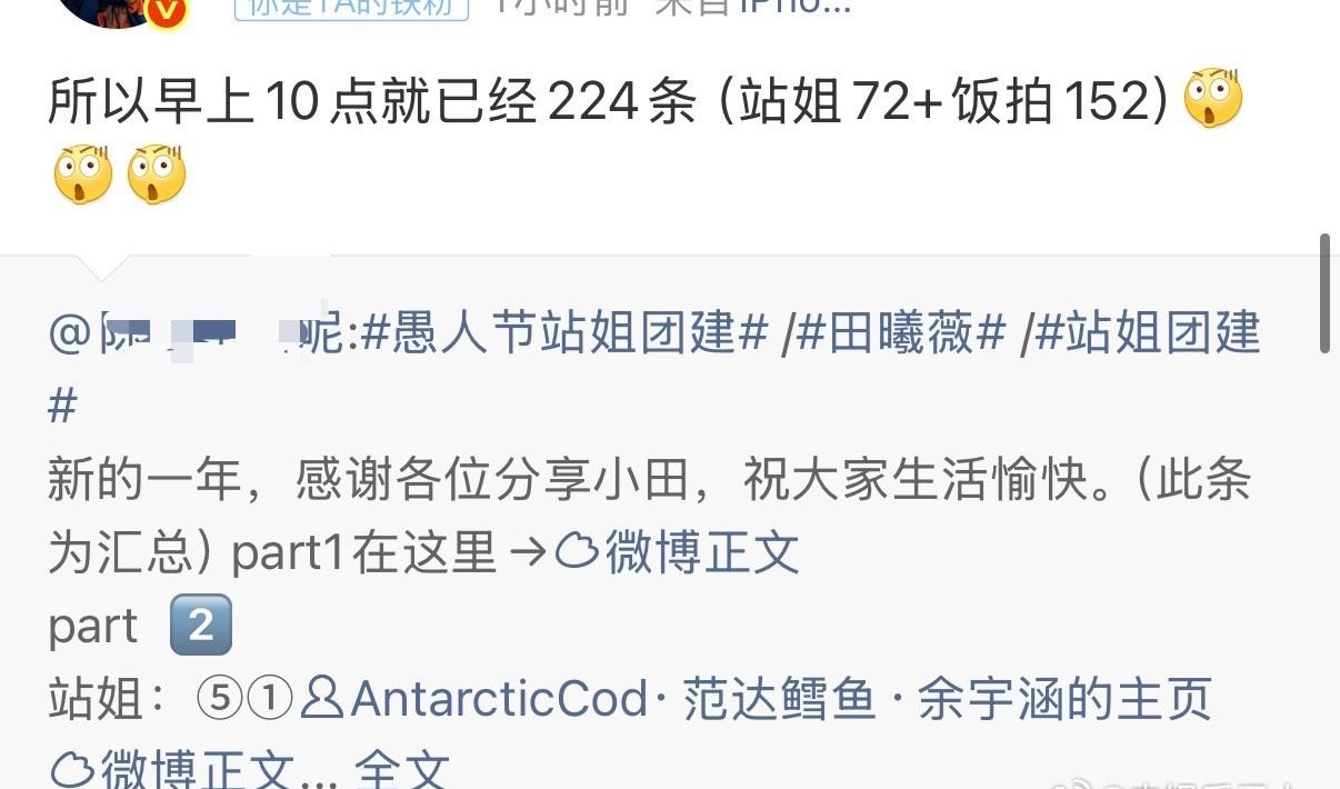 愚人节站姐团建,有200多个站子发田曦薇啊,这是为啥?
