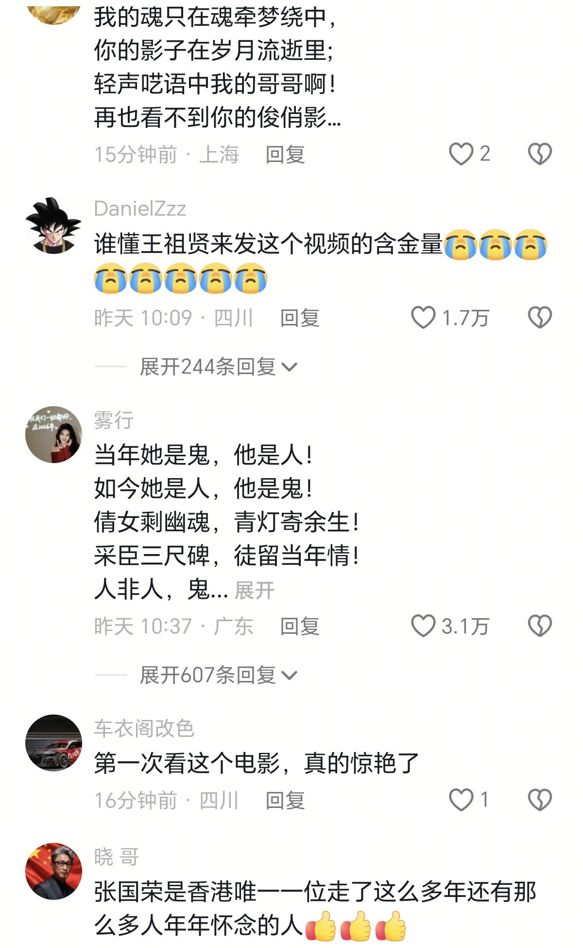 女神王祖贤近日发视频怀念哥哥张国荣,只见她戴着墨镜,神情哀伤,更让人想不到的是网友的评价,让人想不到… 当年她是鬼,他是人! 如今她是人,他是鬼! 倩女剩幽魂,青灯寄余生! 采臣三尺碑,徒留当年情! 人非人,鬼非鬼! 倩女幽魂今犹在,不见当年宁采臣! 让人看了心酸不已,王祖贤作为一代人的回忆,也是肉眼可见的衰老了! 人生如戏,戏如人生,这大概就是王祖贤此刻最深的感悟了吧!