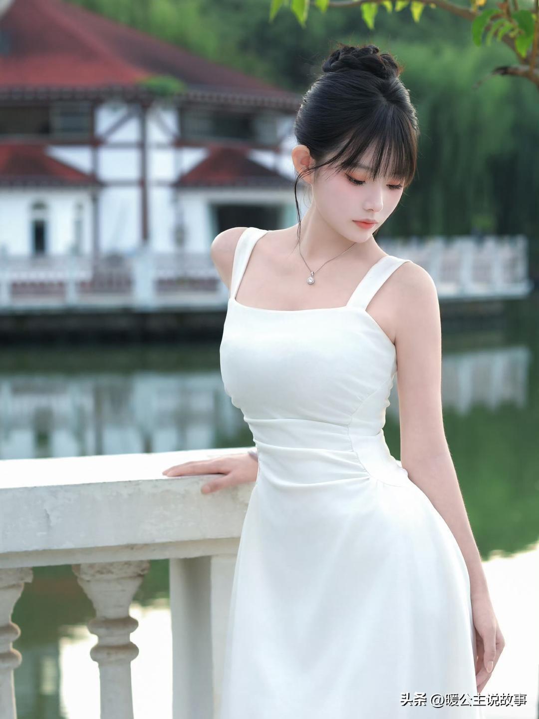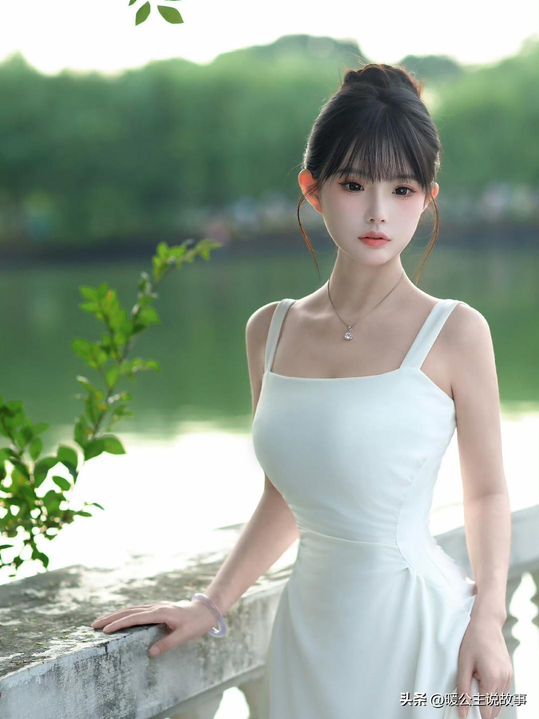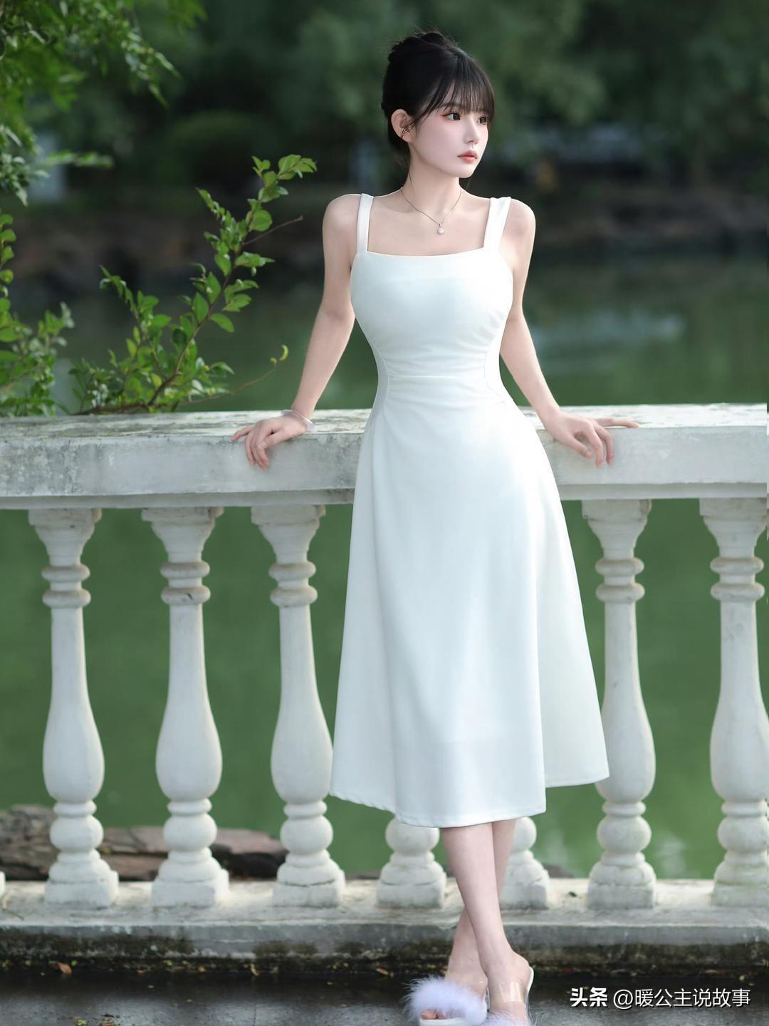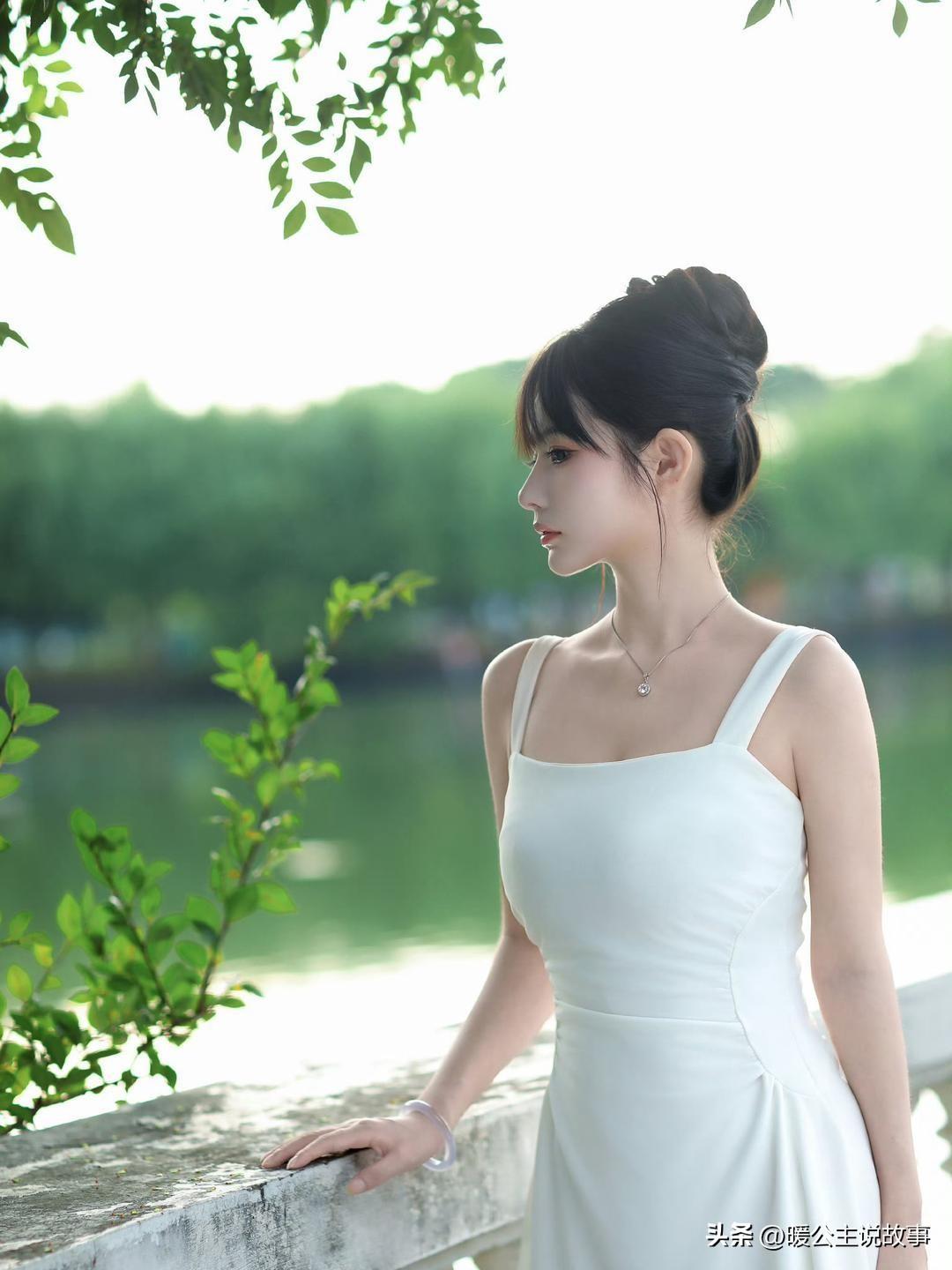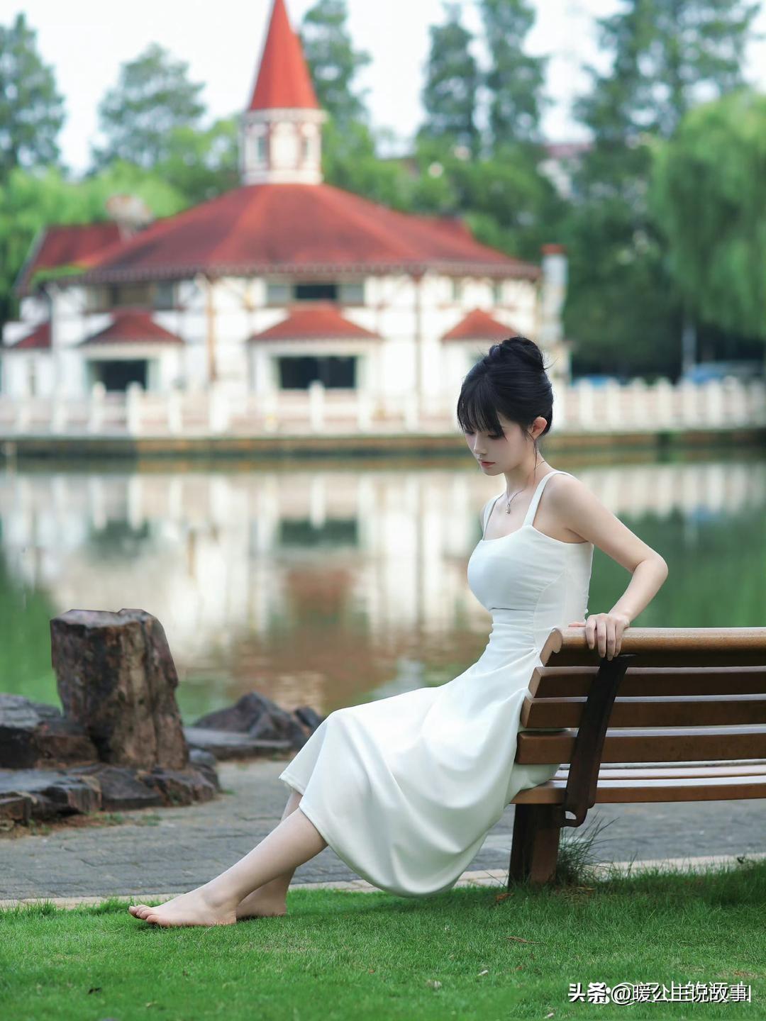 白裙配湖光,赤脚踩在草地上,干净又治愈。阳光白裙少女白裙少女感