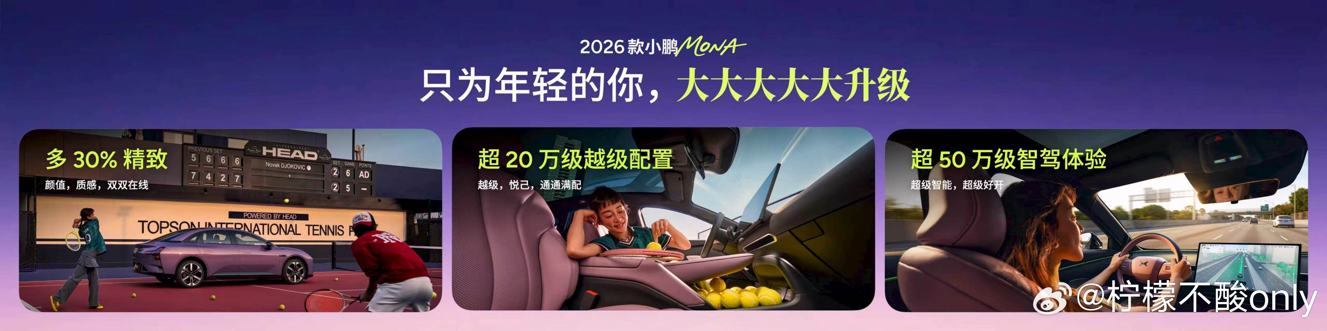 选配提供樱珞粉主题套装,车漆升级成了劳斯莱斯同款的巴斯夫2K清漆,19英寸专属轮毂、专属内饰缝线以及纳帕真皮座椅,越级质感更显诚意。2026款小鹏MONA今日上市2026款小鹏MONA大大大大大升级